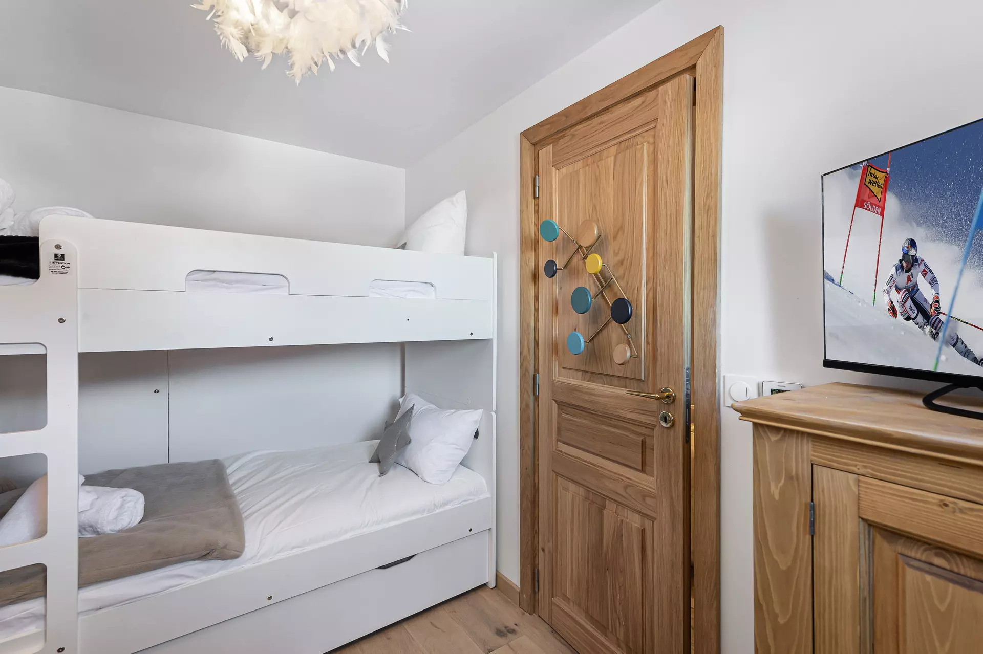 - Chambre 1 : chambre enfant avec 1 lit superposé (2 couchages 90x190cm), TV