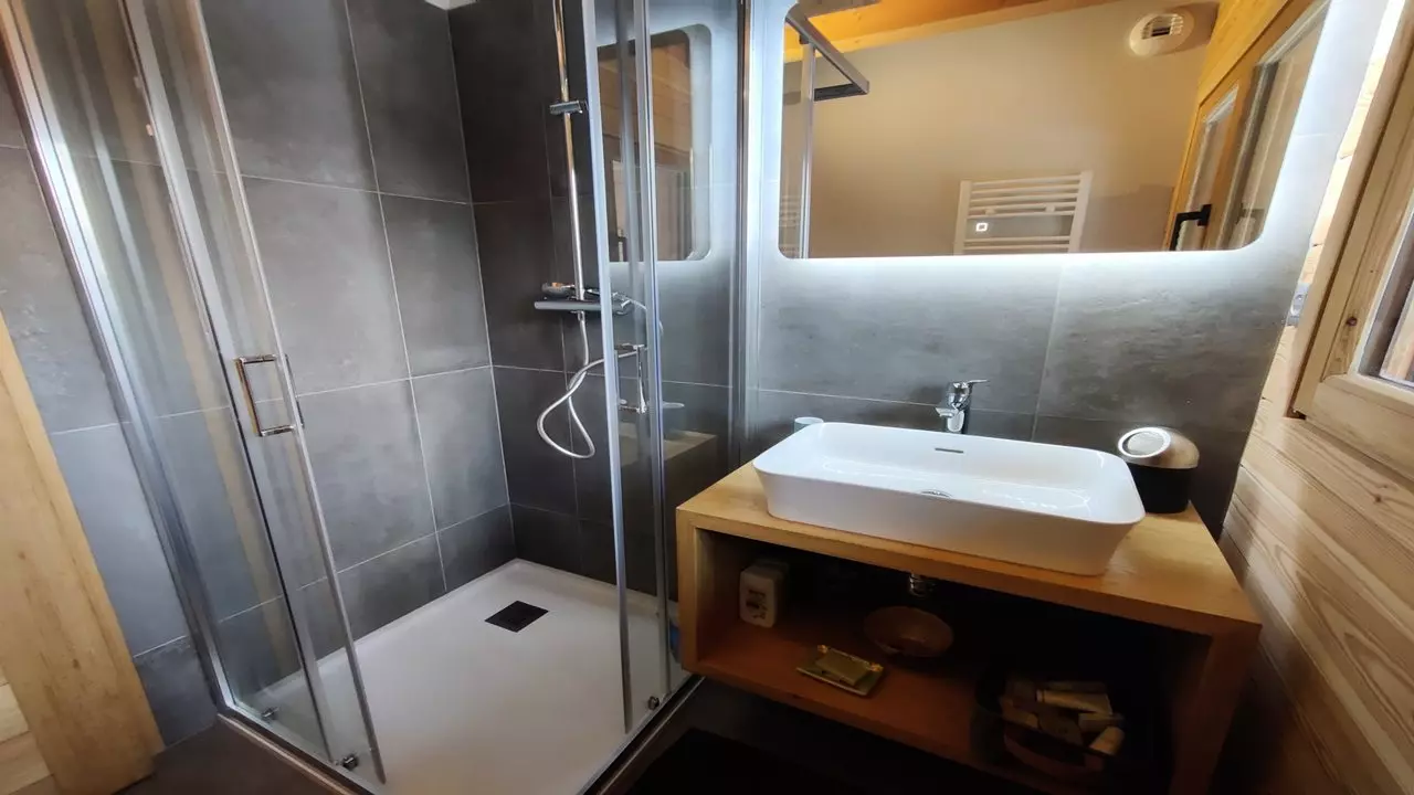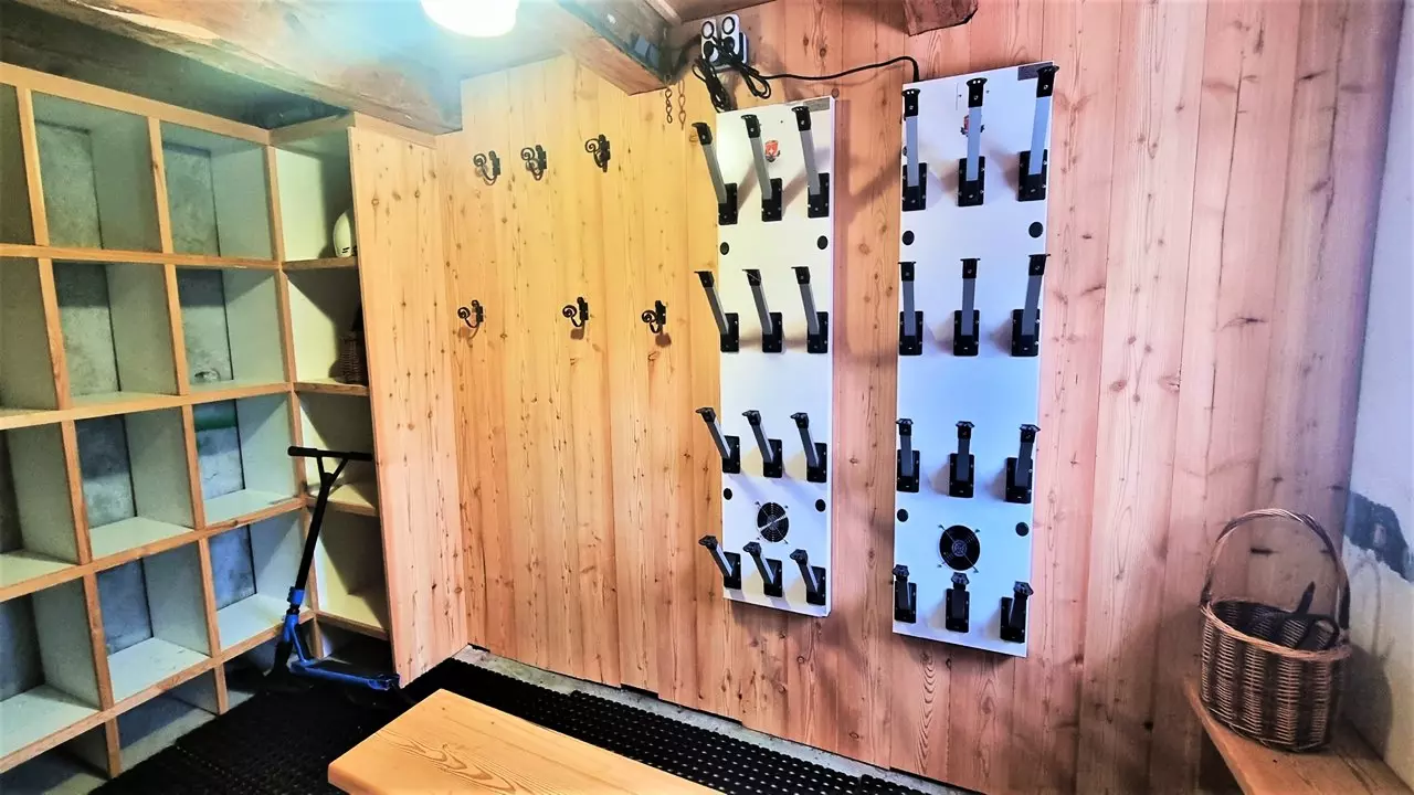 L'espace "ski-room" est au sous sol du Chalet accessible uniquement par l'extérieur.