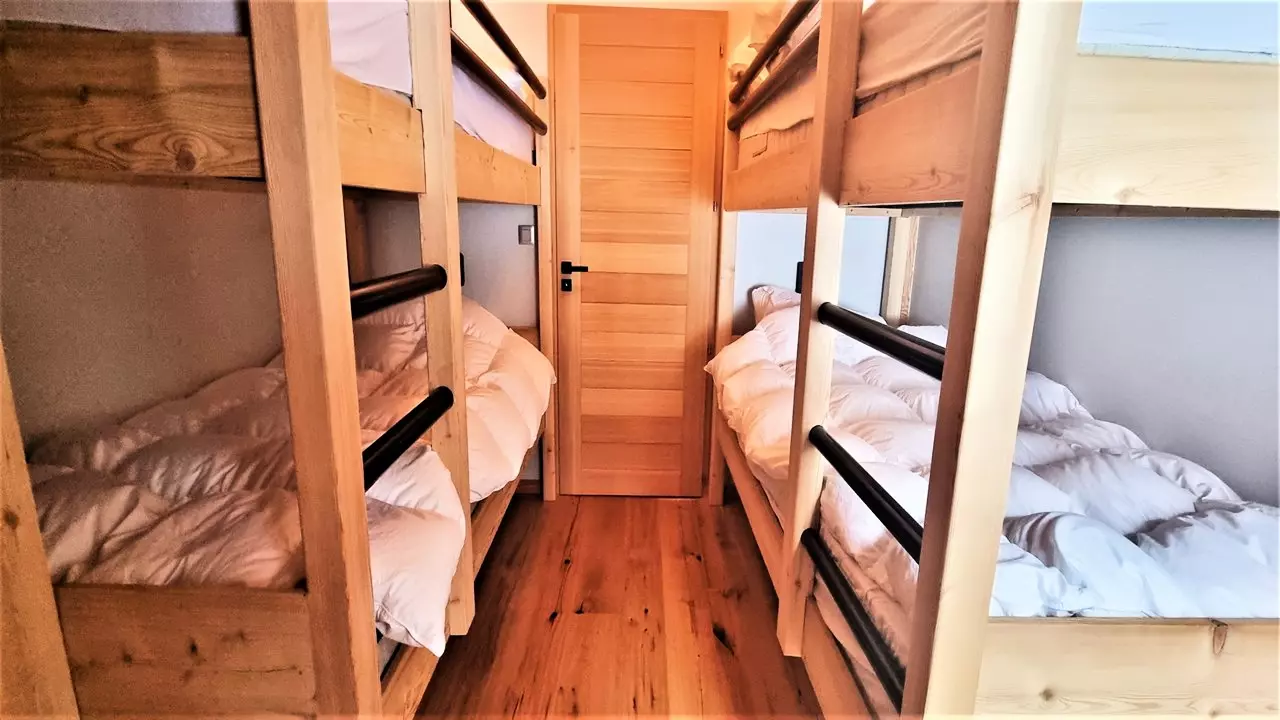 WC indépendant, un dortoir avec 4 couchages (lits superposés), une grande salle de lecture + bibliothèque, 1 chambre avec 2 lits simples.