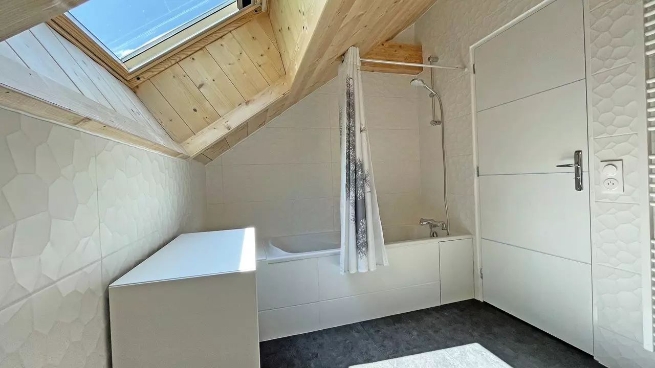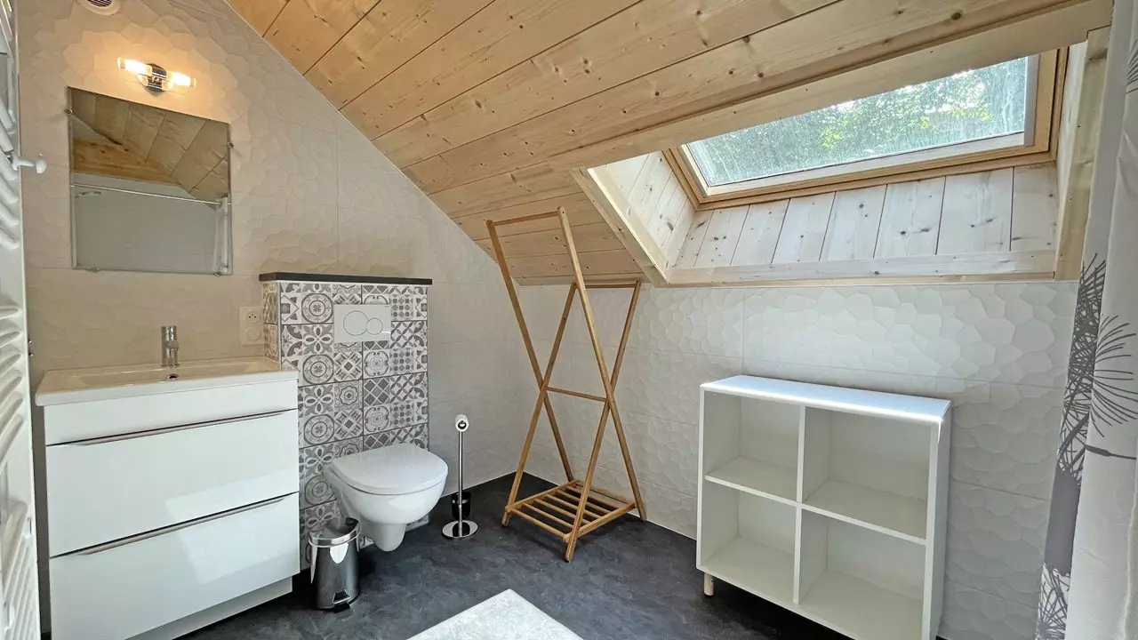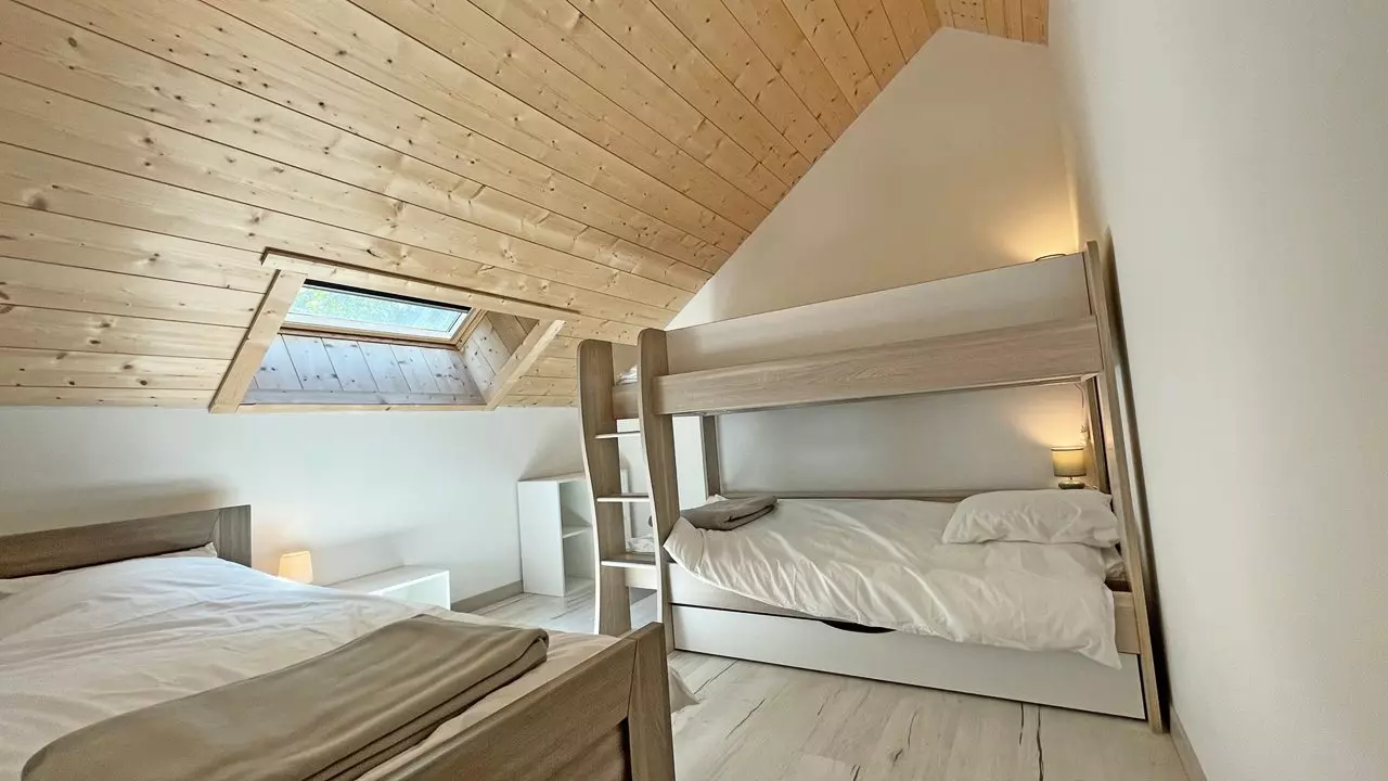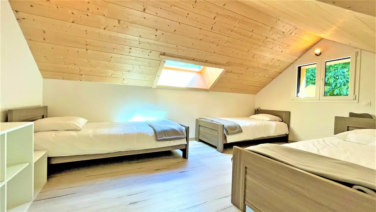 Sur 3 niveaux le Chalet est composé : d'une grande entrée avec 2 placards et WC indépendant, 2 chambres avec lit double en 160, salle de bains avec douche et WC, 2 chambres avec 6 lits simples en 90, salle de bains avec baignoire et WC, une cuisine équipée avec réfrigérateur, plaque à induction, four, lave-vaisselle, micro-ondes, grille-pains, bouilloire, cafetière à filtre,..., un petit congélateur est à disposition dans la buanderie où se trouve également une machine à laver. Salle à manger spacieuse, le séjour est équipé d'une télévision. Accès à l'extérieur par le séjour. Stationnement au pied du Chalet ou dans le garage.