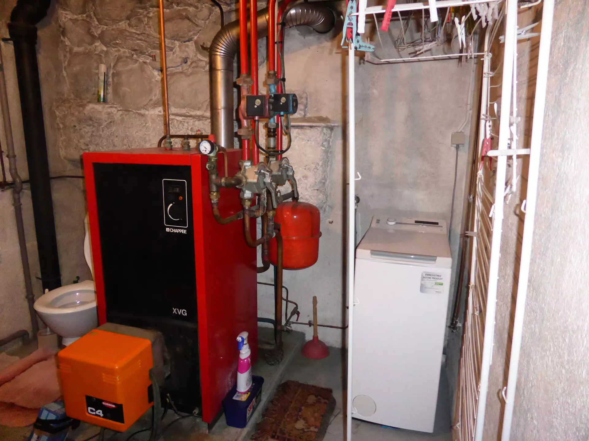 - Une chaufferie avec WC, lave main, lave-linge et chaudière.
