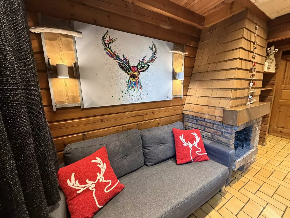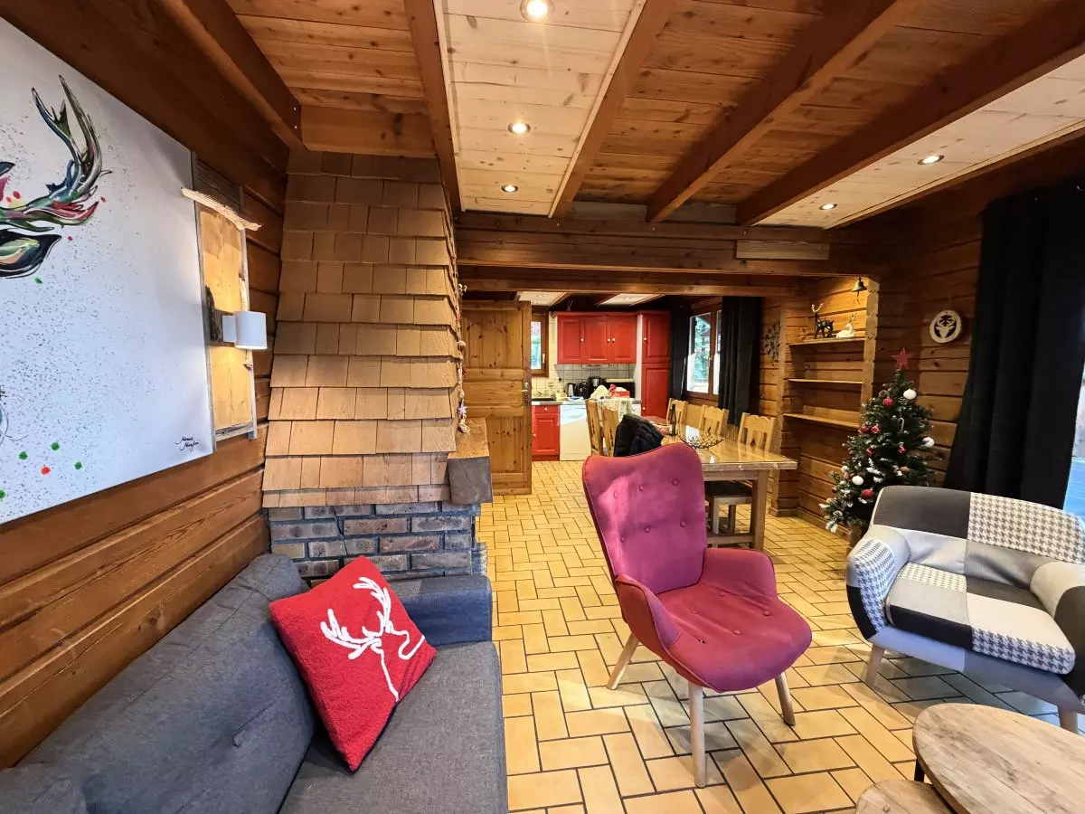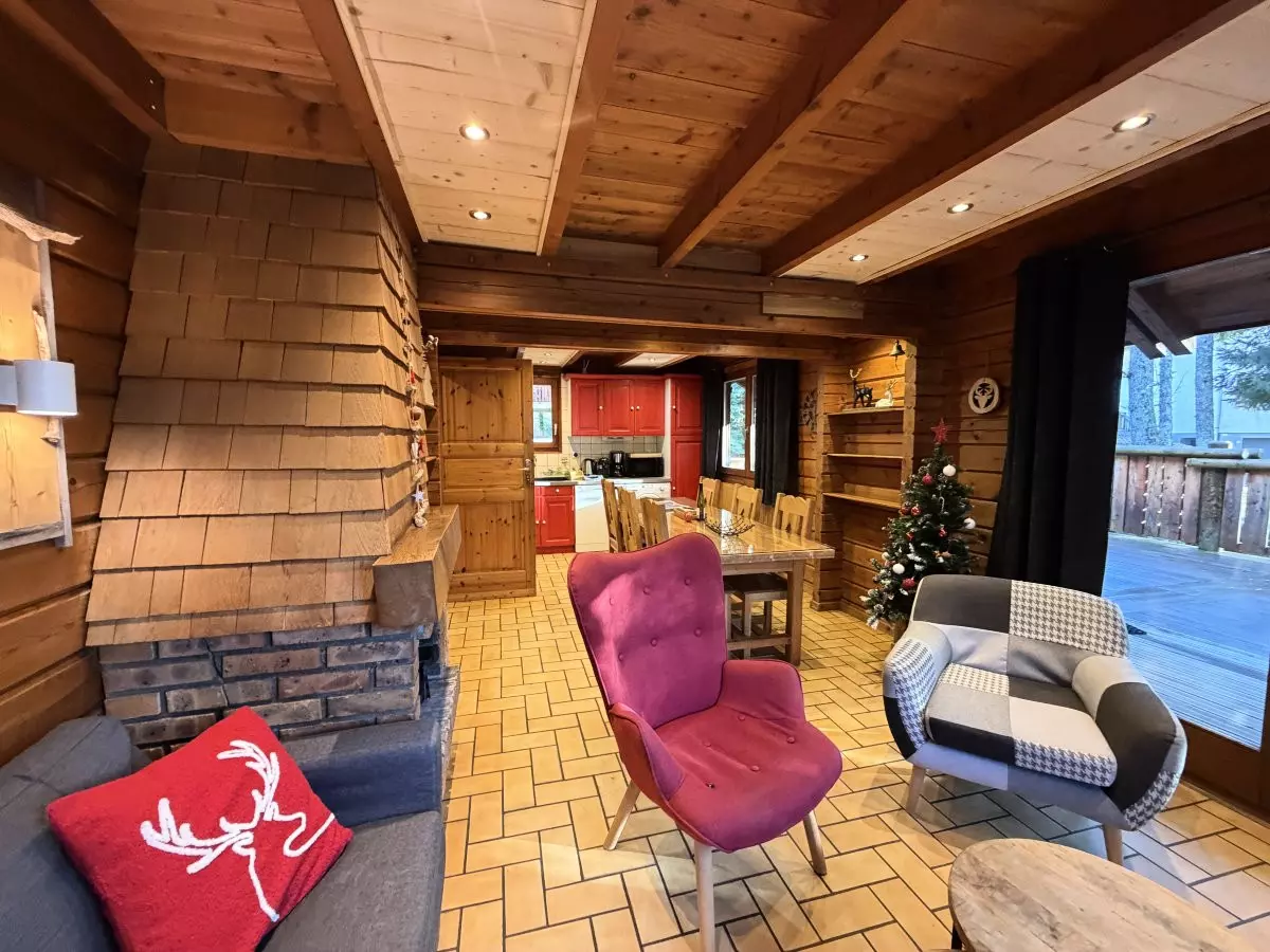 - Salon/Séjour : Espace chaleureux avec canapé confortable, cheminée, TV à écran plat et coin repas, idéal pour se détendre en famille ou entre amis