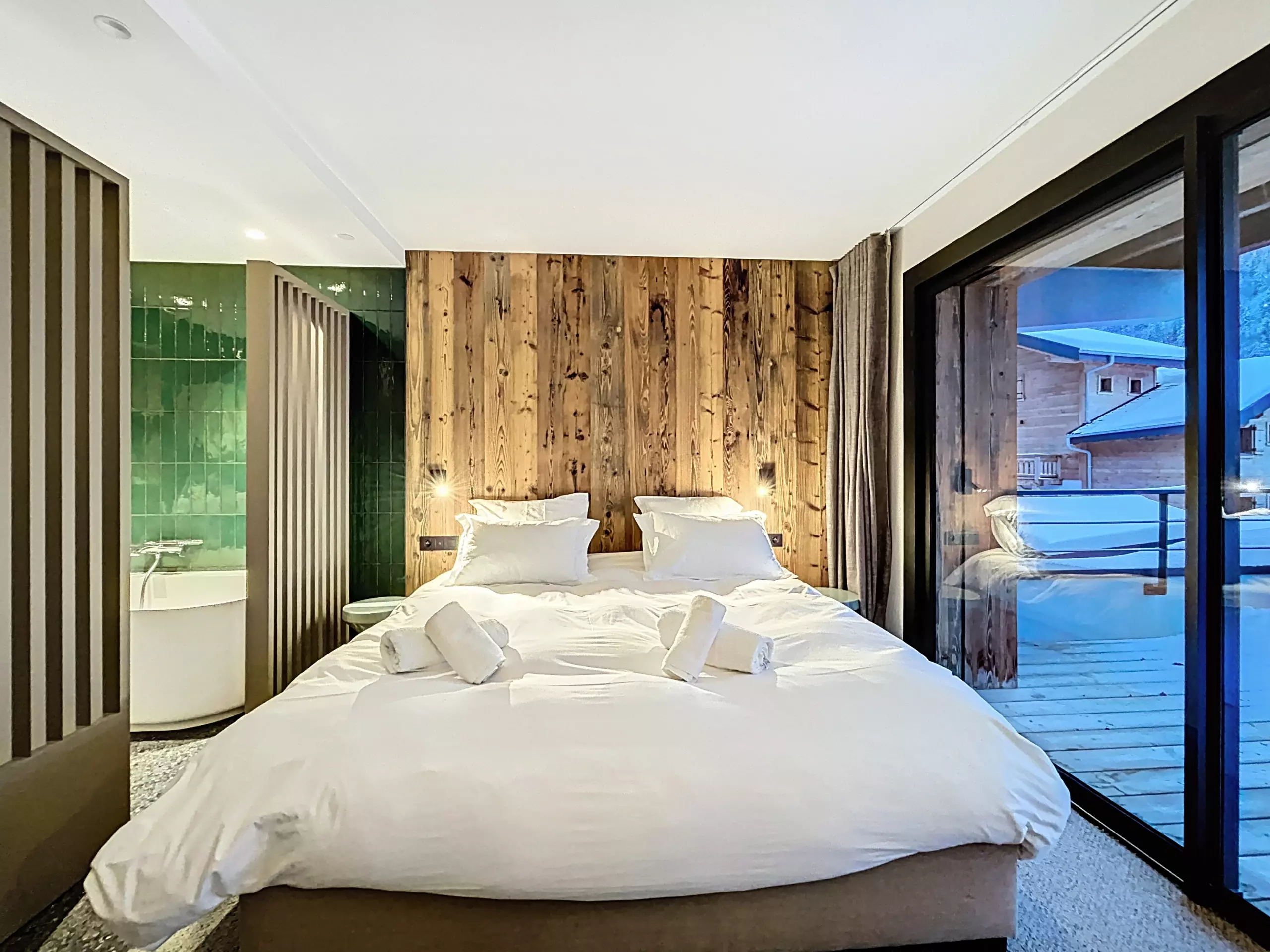 8 pièces + 1 studio de 30 m² indépendant et entièrement équipé, 5 chambres avec lit double 180 x 200 - 1 chambres avec 4 lits 90 x 200 , 1 grand studio avec cuisine équipée, salle de bain et wc , 6 salles de bains - 5 douches et 2 baignoires - 7 wc, Espace Sauna , Salle Cinéma, Table de tennis de table, Cheminée, Sols chauffant, Ski room avec sèche chaussures / gants, 5 places de parking dont deux couvertes, Vue panoramiques