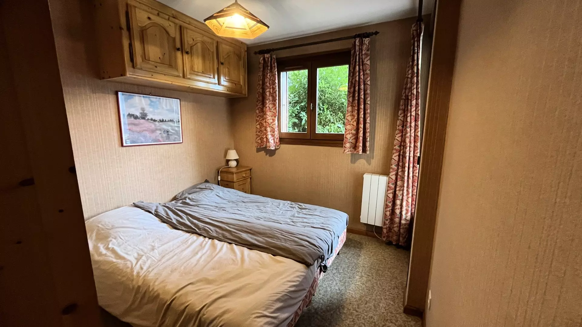 A l'entrée, un coin montagne avec 2 lits superposés, une chambre avec 2 lits jumeaux, une deuxième chambre avec un lit double, une salle de bains, un WC séparé, un séjour, une cuisine, et un balcon côté sud-ouest de 10m² offrant une belle vue sur le village et les montagnes.
