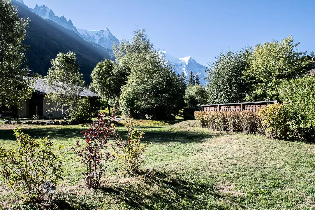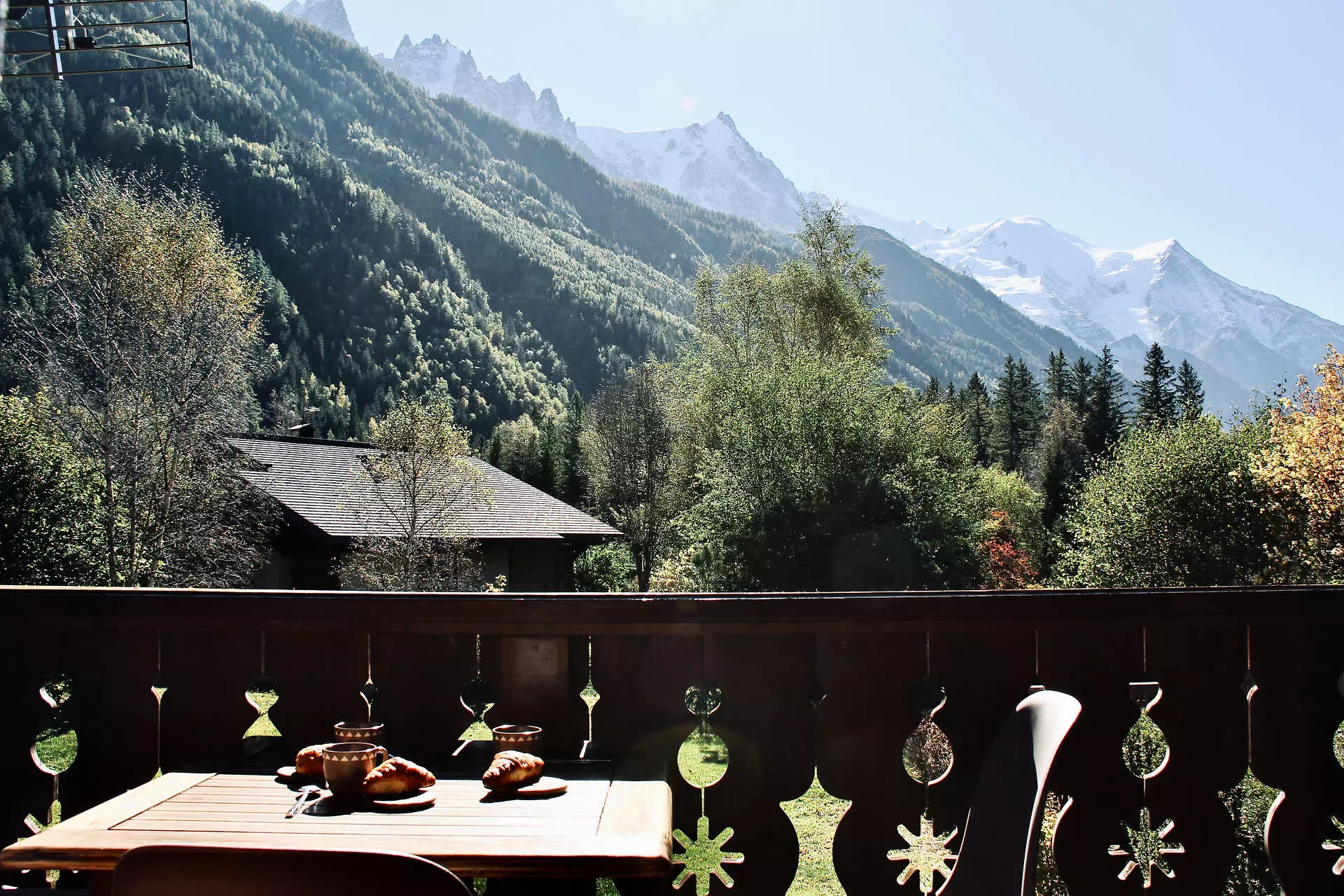 - Balcon équipé d'un salon de jardin avec vue sur le Mont-Blanc