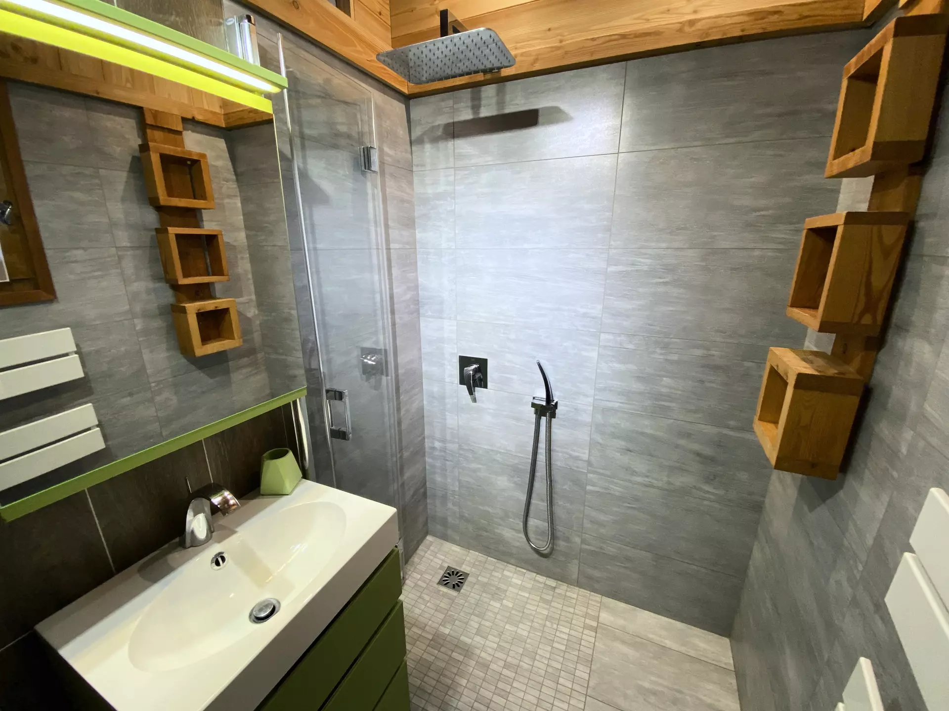 - Cuisine équipée (réfrigérateur, lave-vaisselle, four, micro-ondes, plaques à induction et lave-linge, cafetière filtre, bouilloire, grille-pain, appareils à raclette et à fondue)