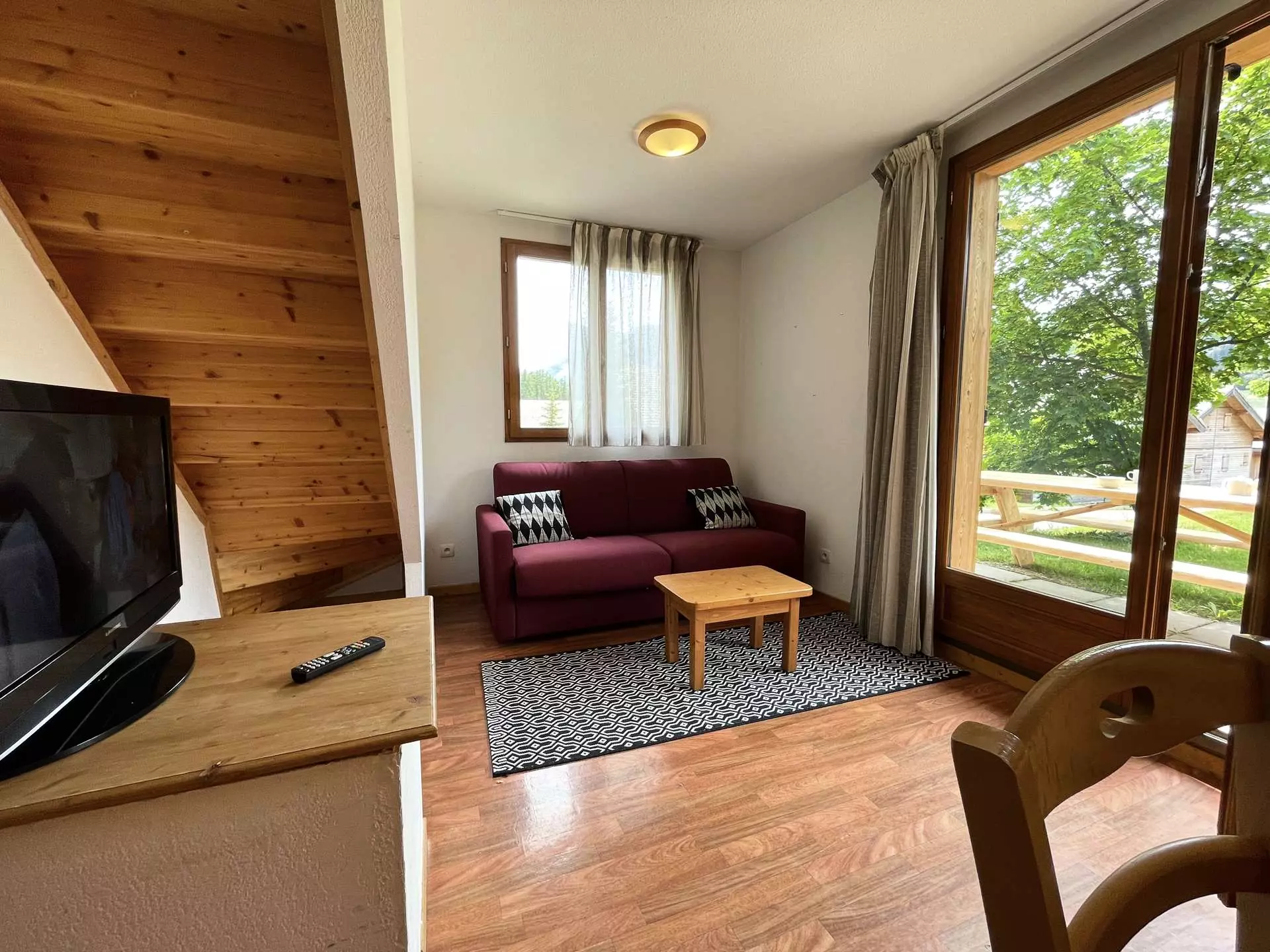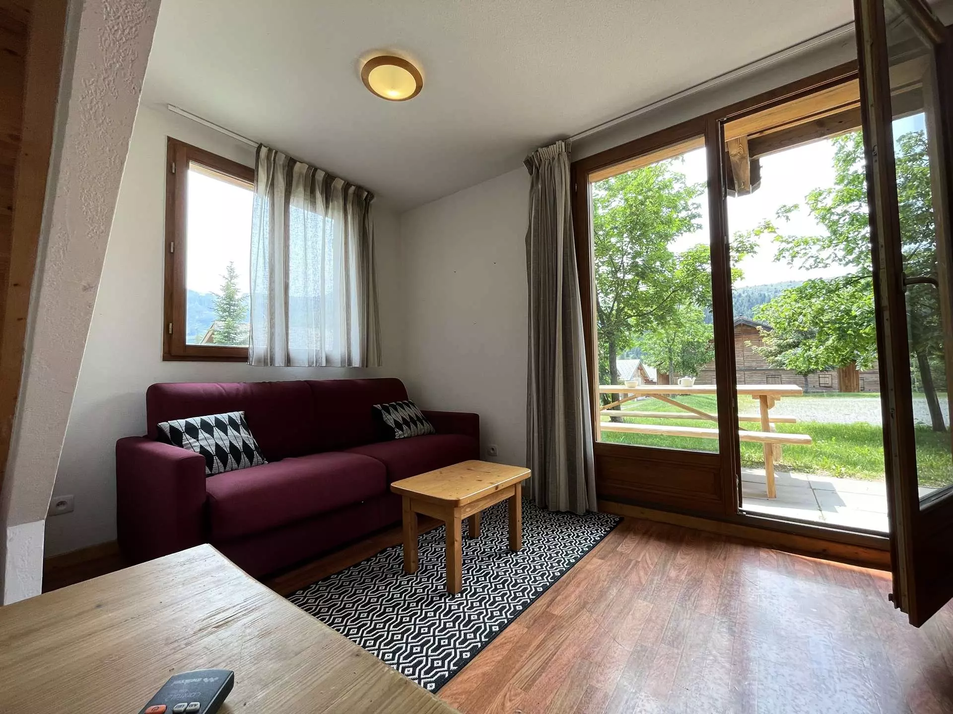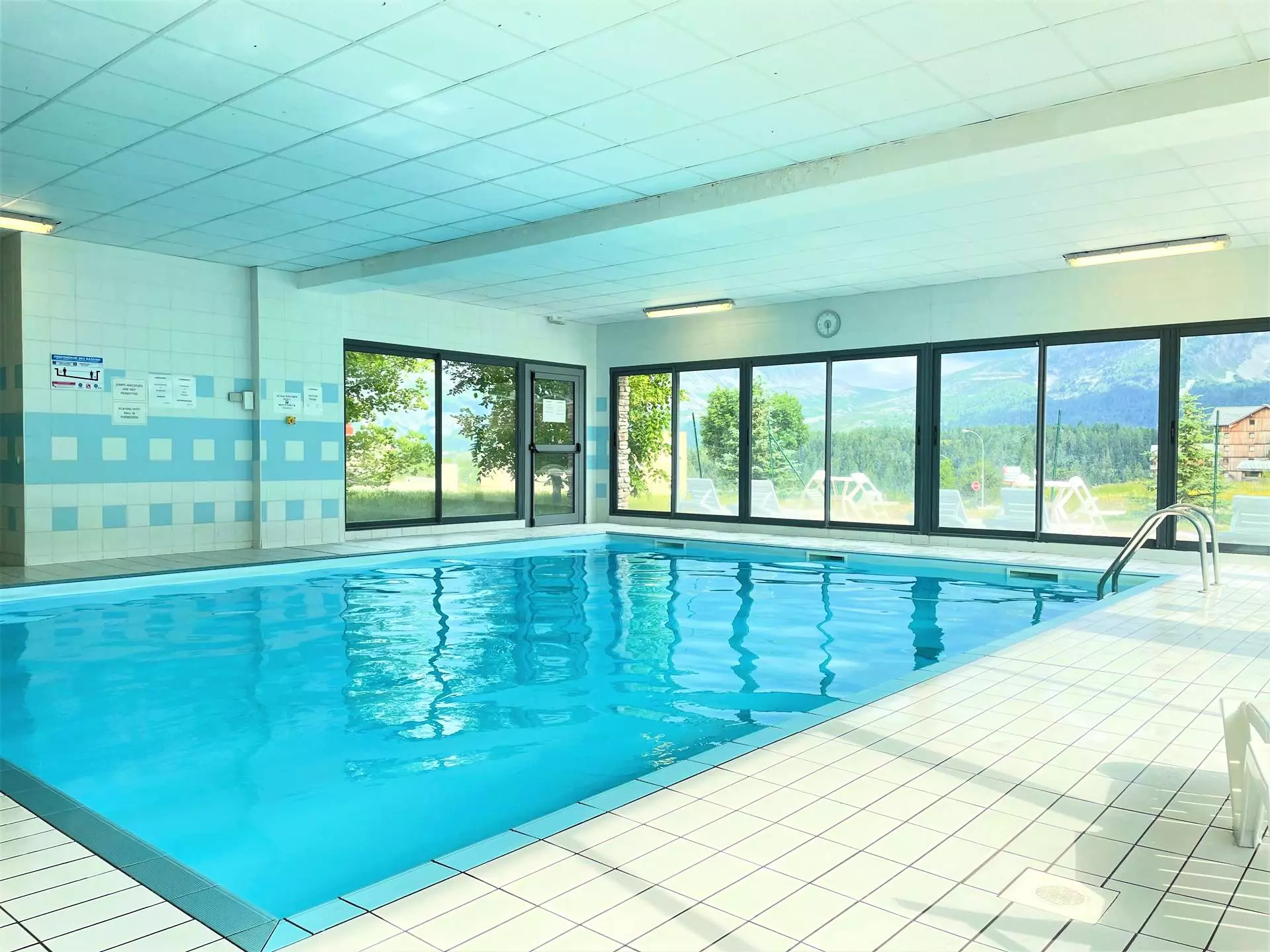 Ce chalet 3 pièces lumineux exposé Sud-Ouest, à seulement 450m du télésiège Le Jas, est situé dans la résidence "Les Chalets du Soleil " et donne accès à la base de loisirs.