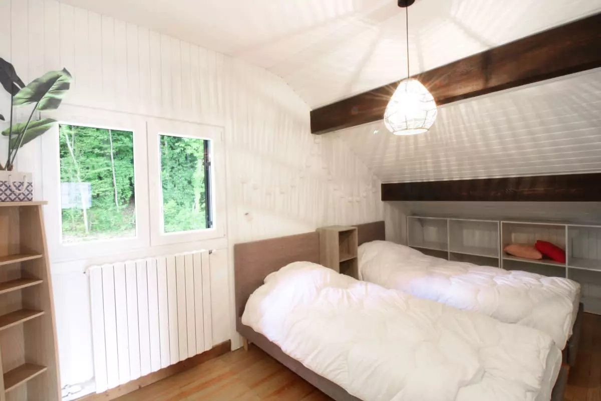 - Une 3e chambre avec deux lits simples (90x190cm), vue forêt