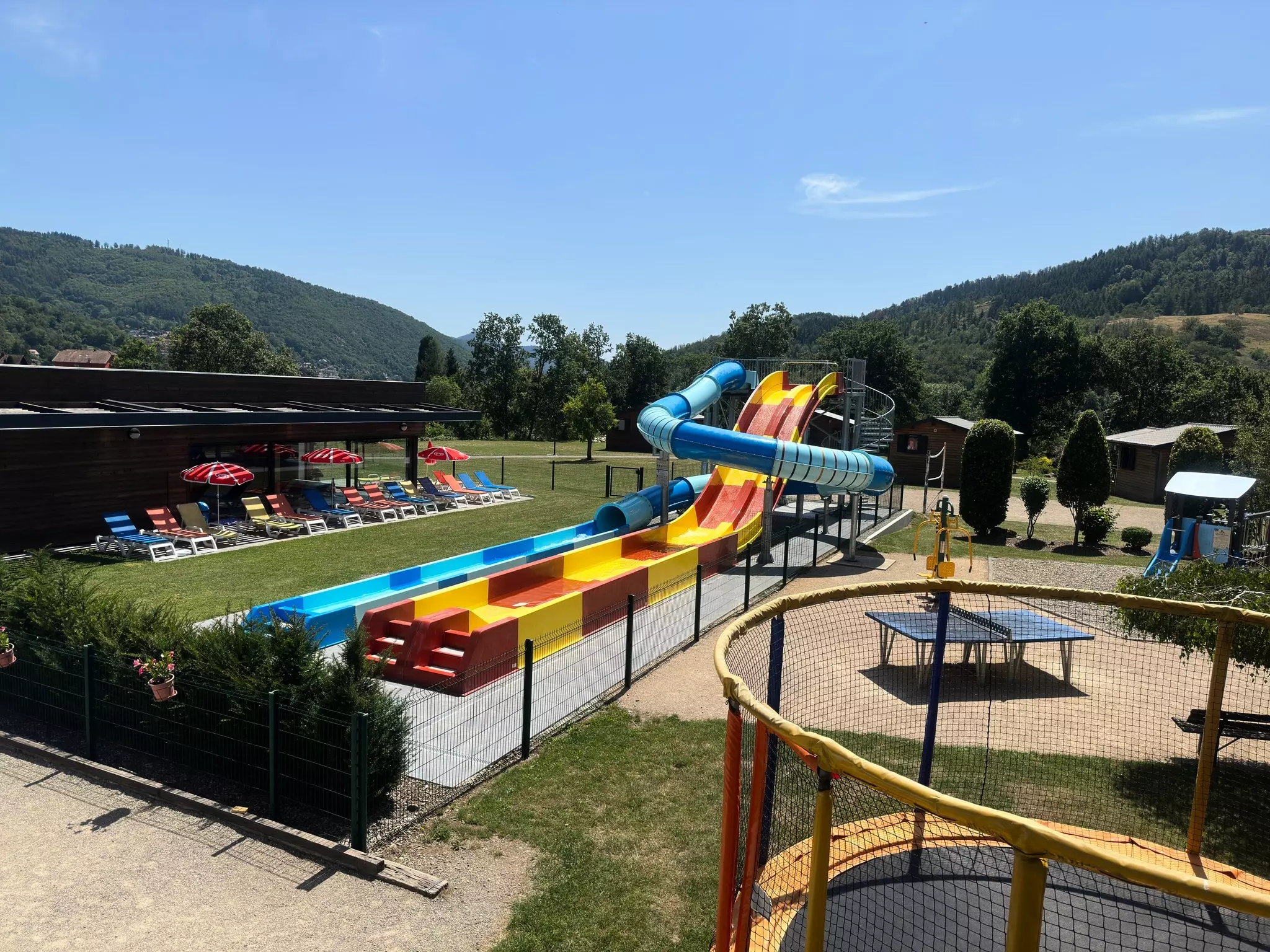 Piscine chauffée sur place avec bains à remous . terrain de jeux pour enfant