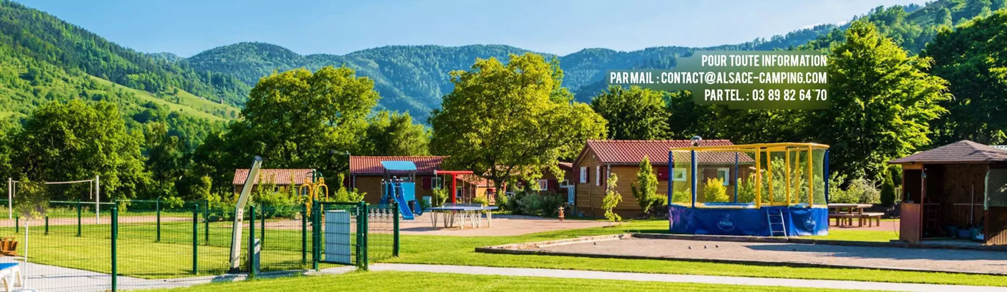 Situé au Coeur de la vallée de la Thur en Alsace, au pied des Vosges, à 450 mètres d'altitude, nous apportons le plus grand soin à la décoration, l'entretien de nos terrains et installations ainsi qu'à l'hygiène et la propreté de nos sanitaires pour votre plus grand confort.