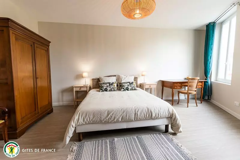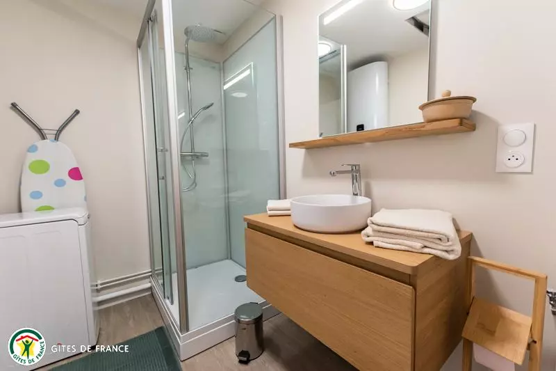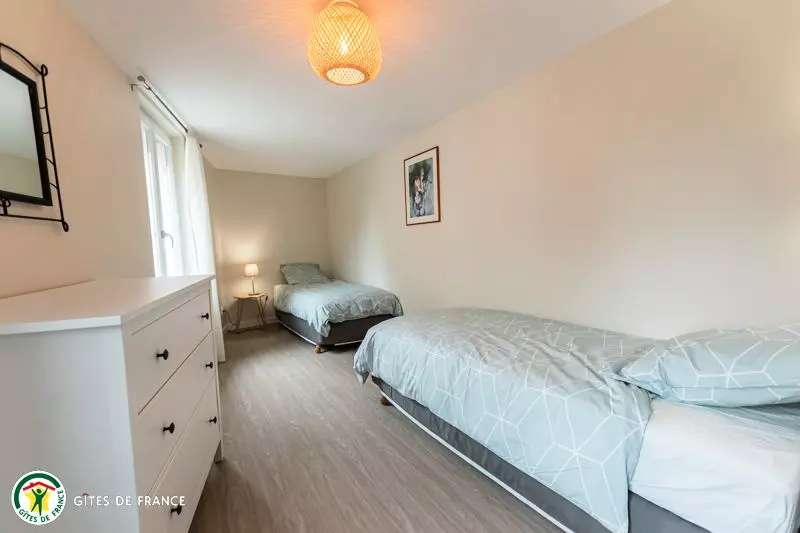 Au 1er étage, vous découvrirez une chambre avec deux lits simples en 90/200 et une seconde chambre avec un lit double en 160/200.
