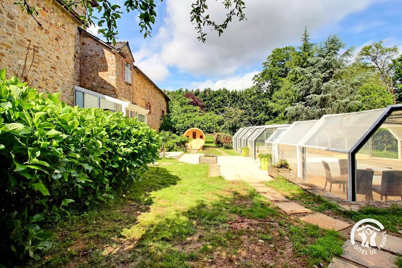 Dans cet écrin de verdure, le bien-être prend tout son sens : piscine chauffée et couverte, sauna, bains à remous et terrain de tennis se fondent harmonieusement dans un décor naturel préservé.