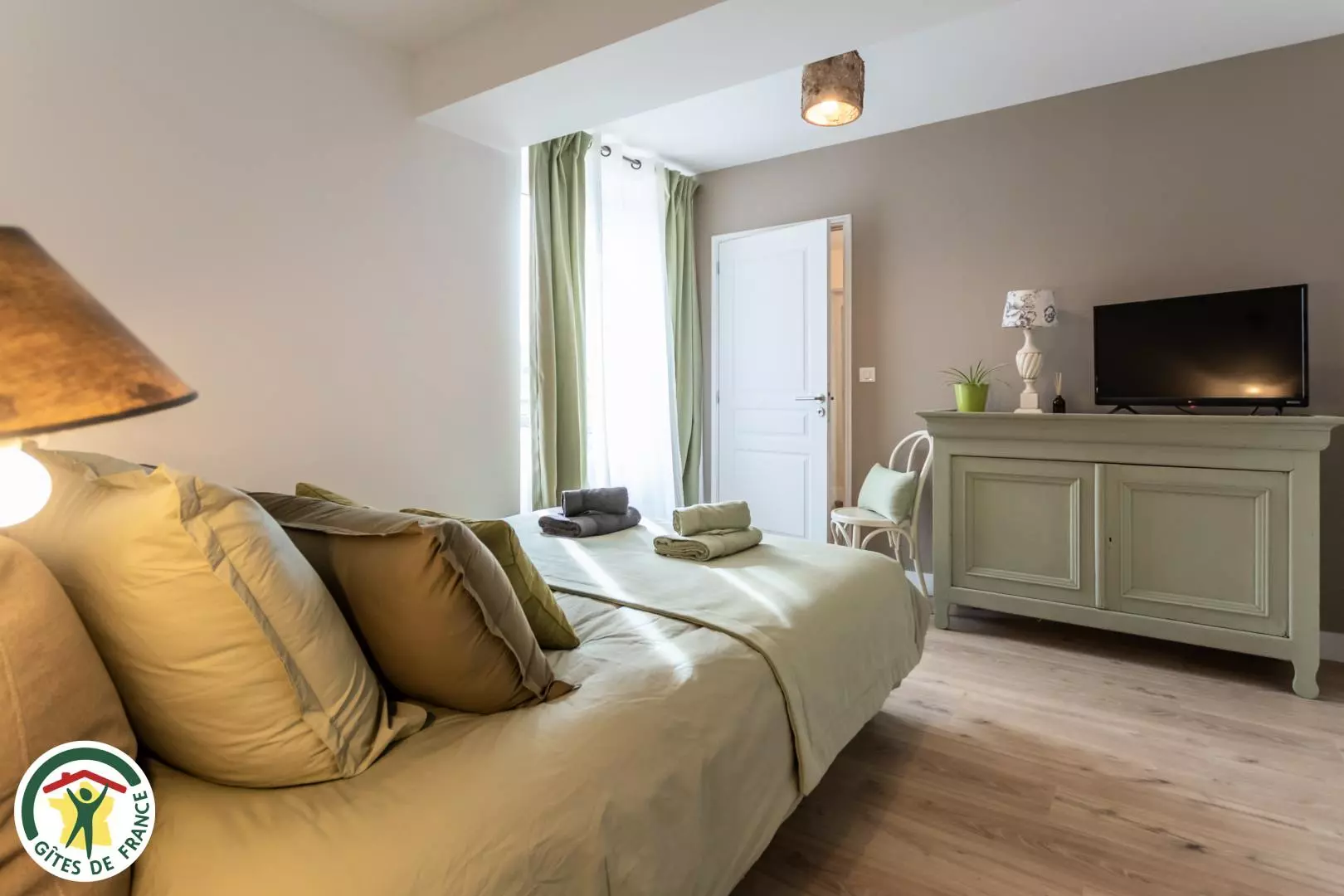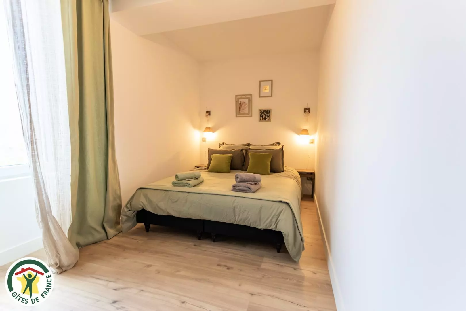 - 2 chambres avec chacune un lit double de 160 x 200 cm pouvant être séparé en 2 lits simples de 80 x 200 cm (sur demande lors de la réservation).