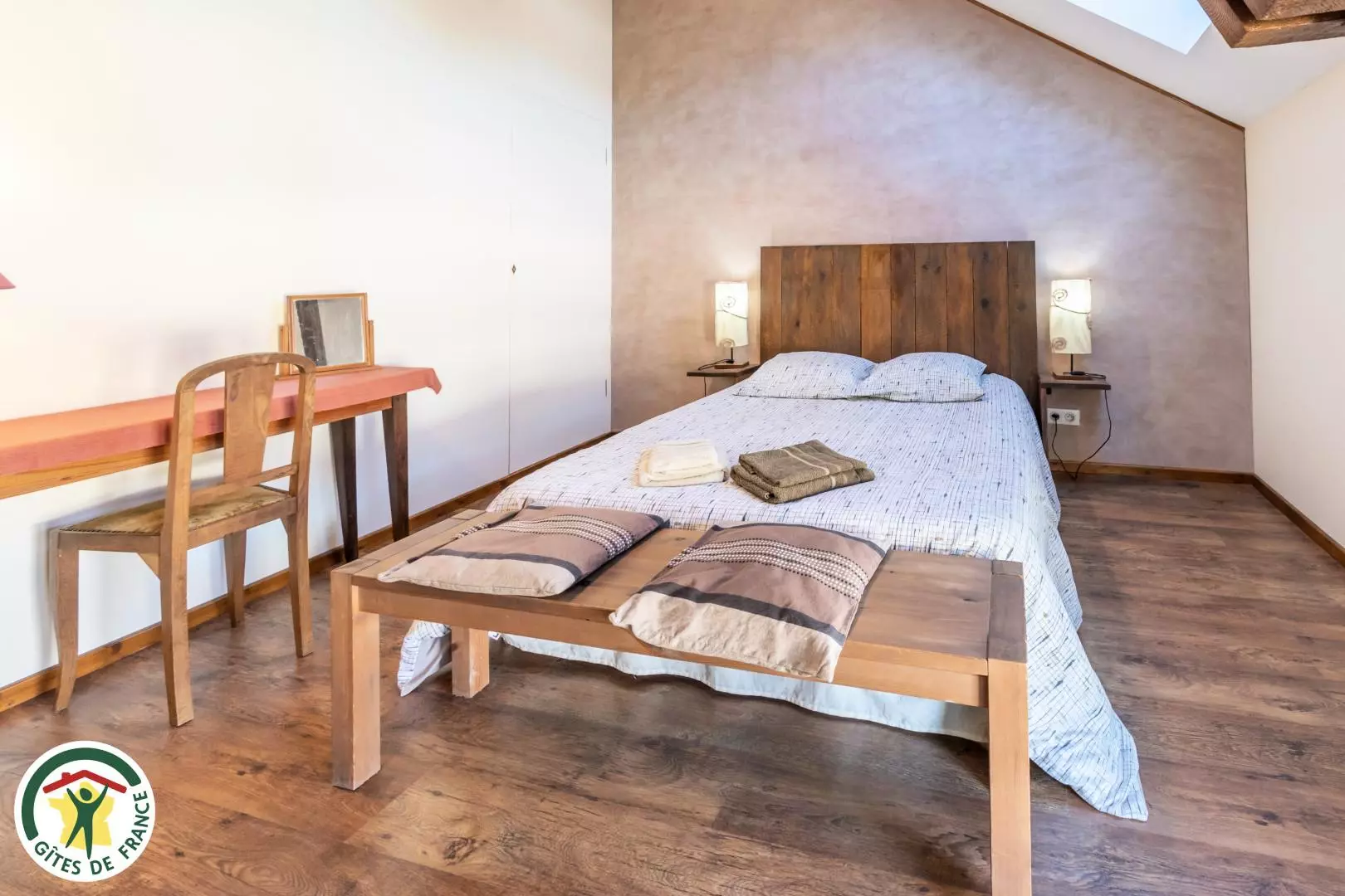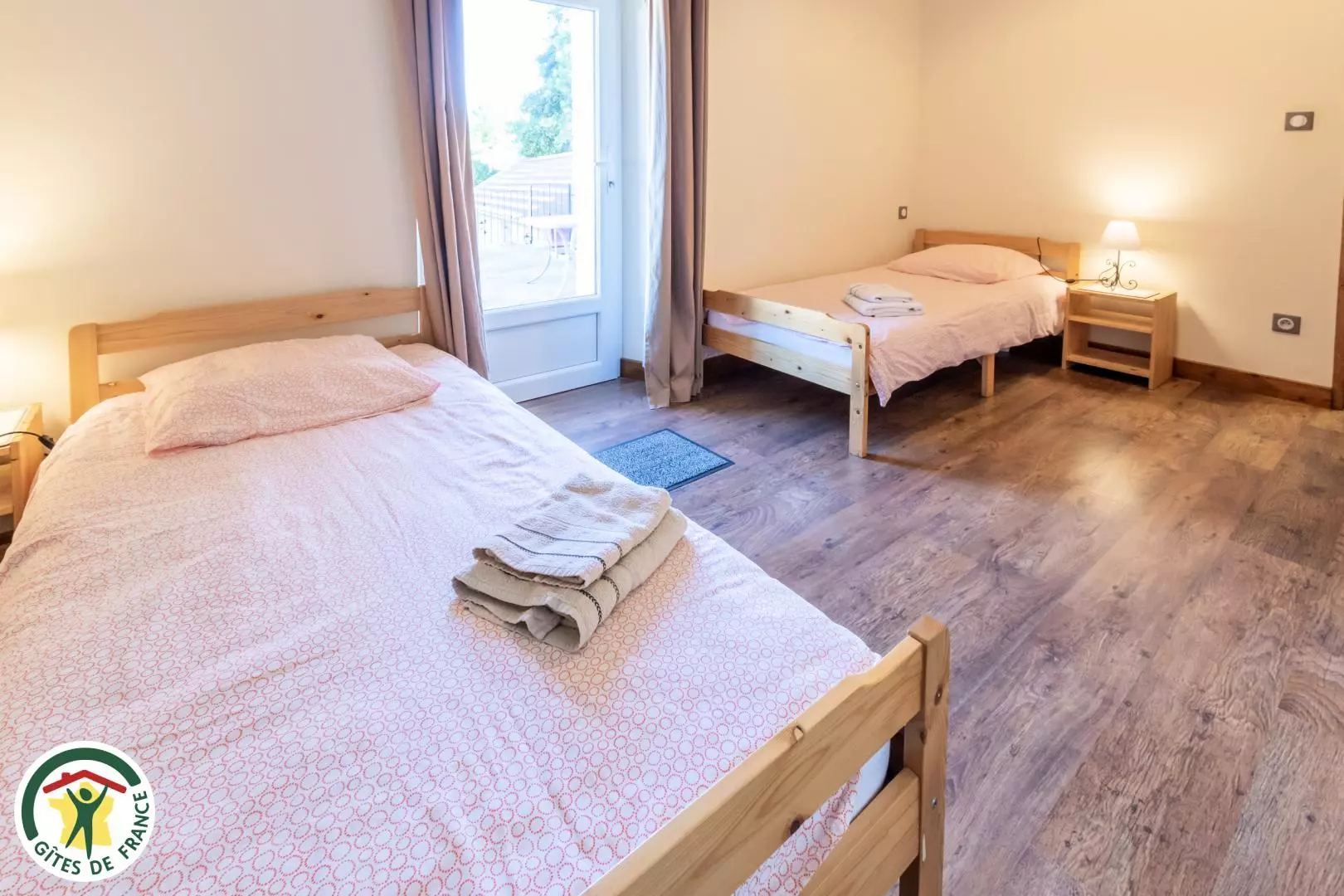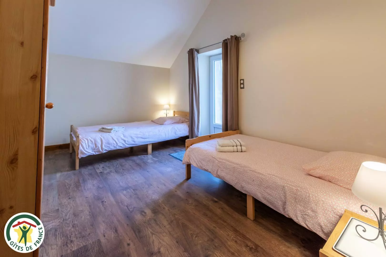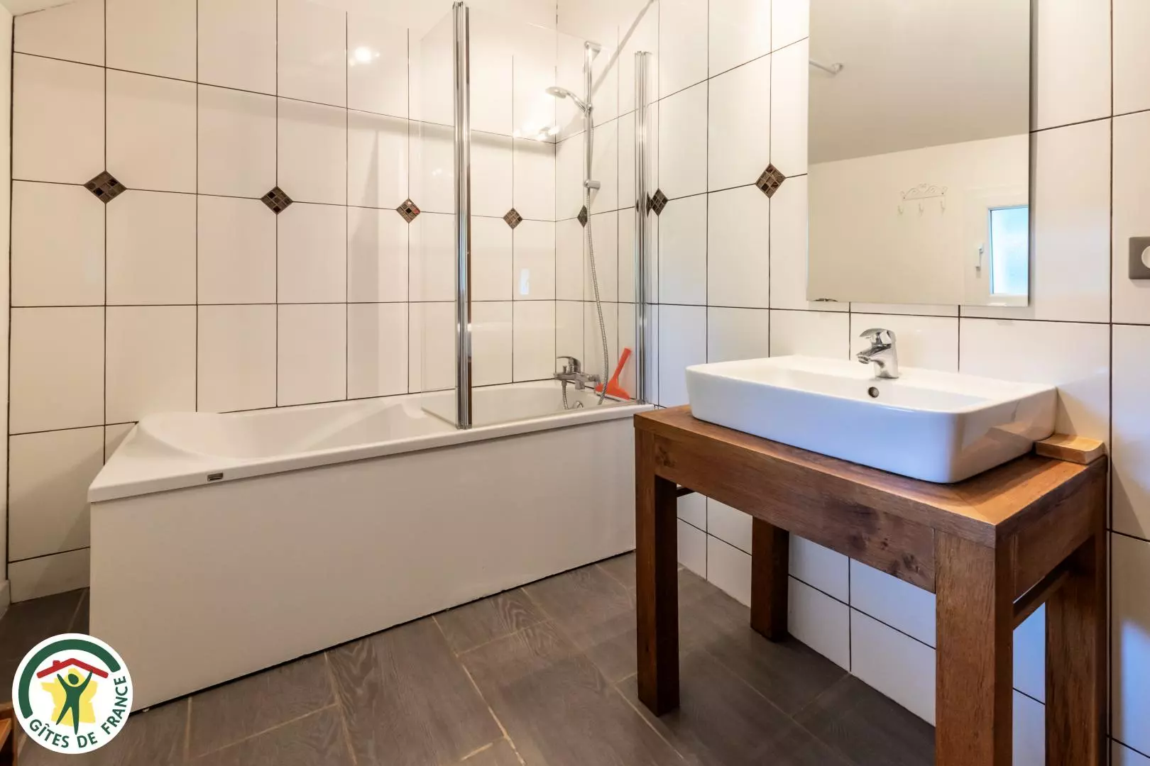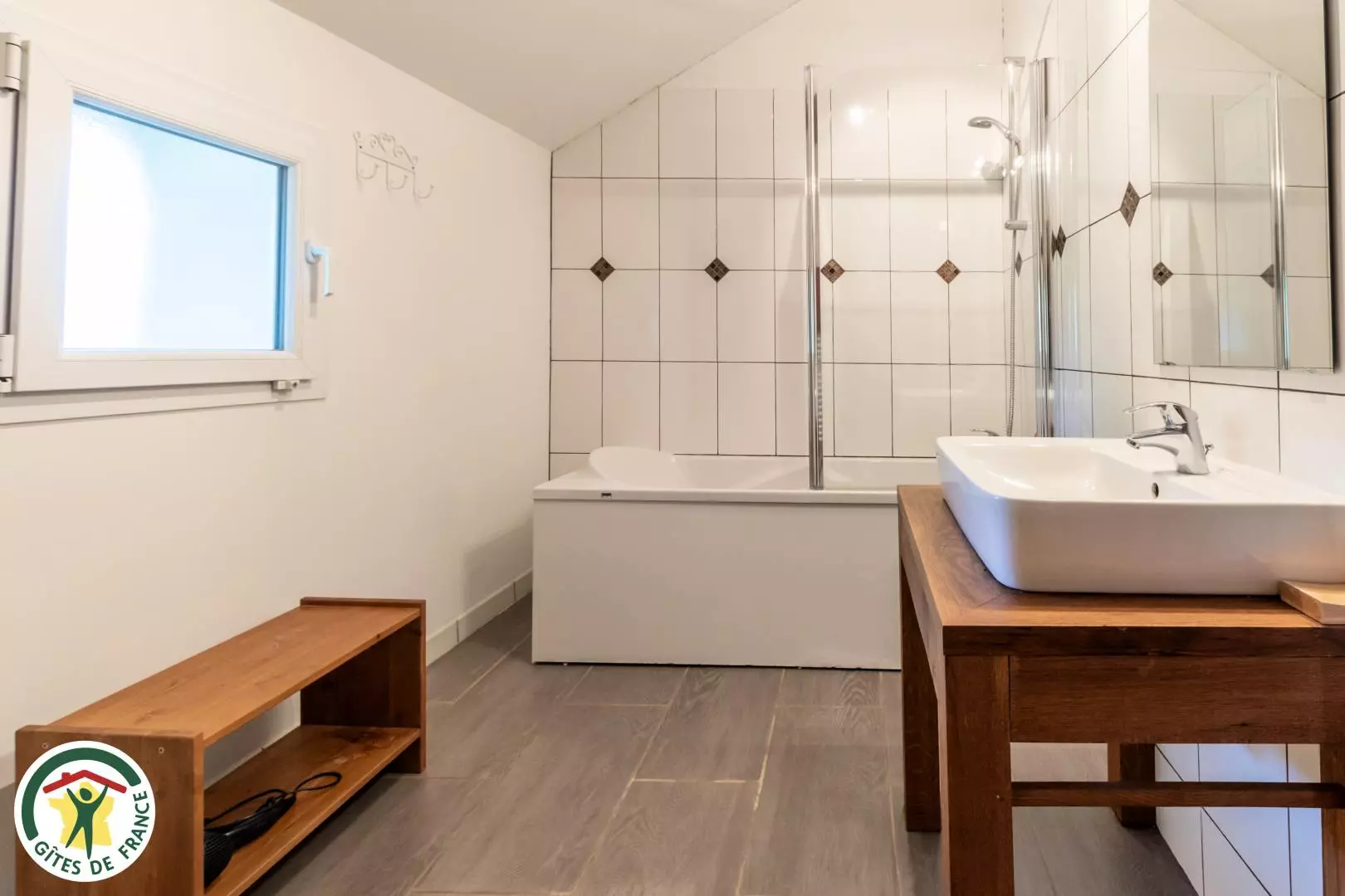 1er étage : une chambre avec un lit de 160 et une chambre avec deux lits de 90 avec accès direct à la terrasse et une chambre avec un lit de 140. Salle de bain avec baignoire et WC séparés.