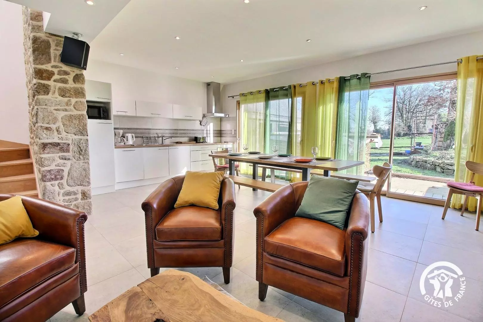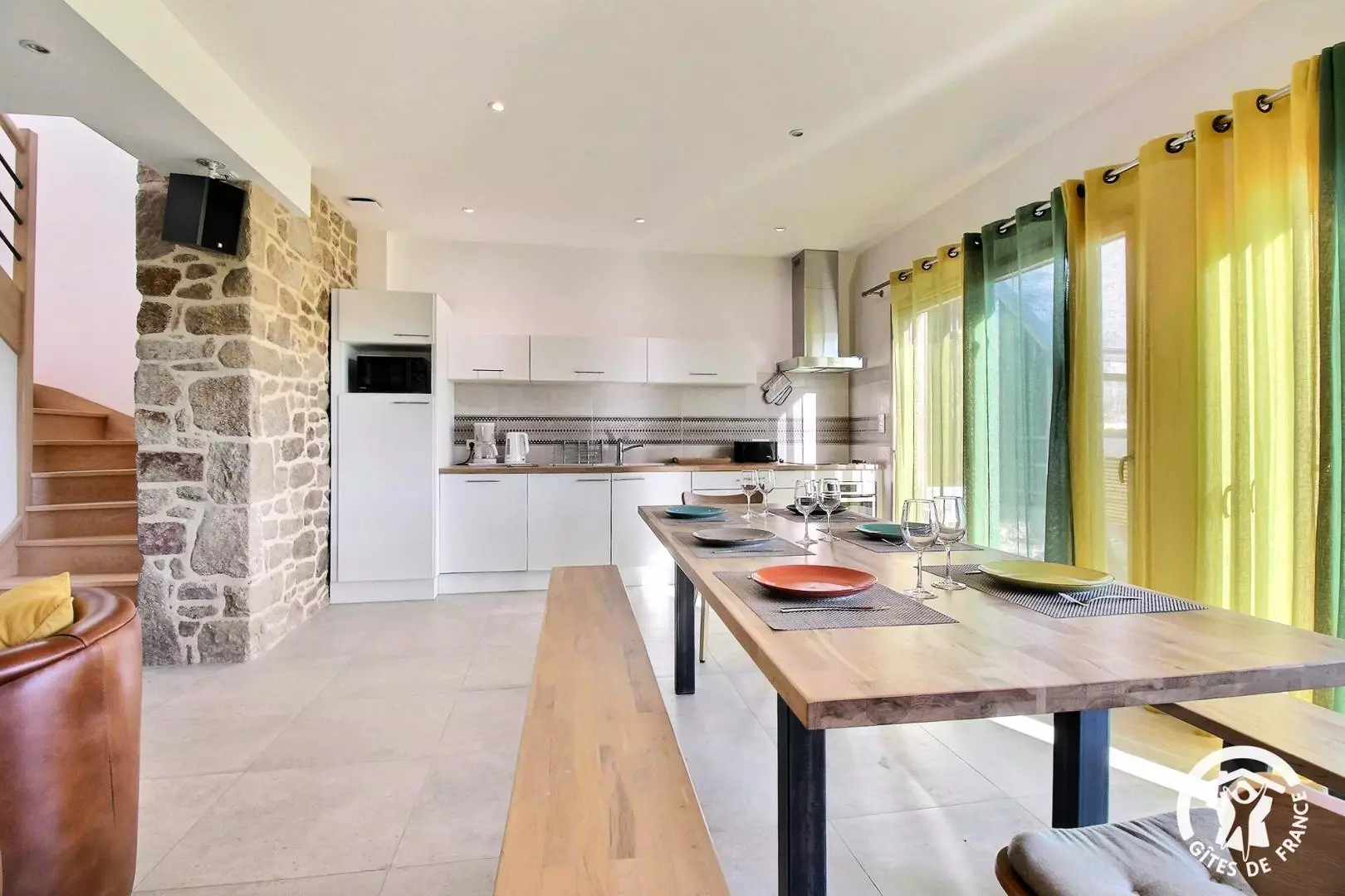 Gîte mitoyen au gîte 56G17534, offrant la possibilité de louer les deux gîtes ensemble pour accueillir jusqu'à 11/12 personnes (référence : 56G17532). Vous apprécierez cette bâtisse entièrement rénovée avec des matériaux écologiques alliant tradition et modernité. De l'isolation en chaux-chanvre à la peinture biologique, en passant par la conception originale de certains meubles, chaque détail a été pensé dans le respect de l'environnement. La restauration a su préserver l'authenticité et le charme du lieu : pierres et poutres apparentes mettent en valeur un agencement à la fois confortable et fonctionnel.