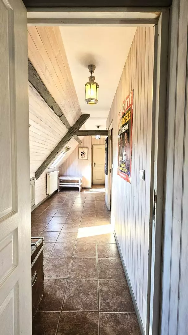 Au rez-de-chaussée, un spacieux salon/séjour vous attend, doté d'un poêle à pellet(nouveauté 2025), d'une grande table, d'un canapé confortable et d'une télévision, hifi et bibliothèque à disposition.