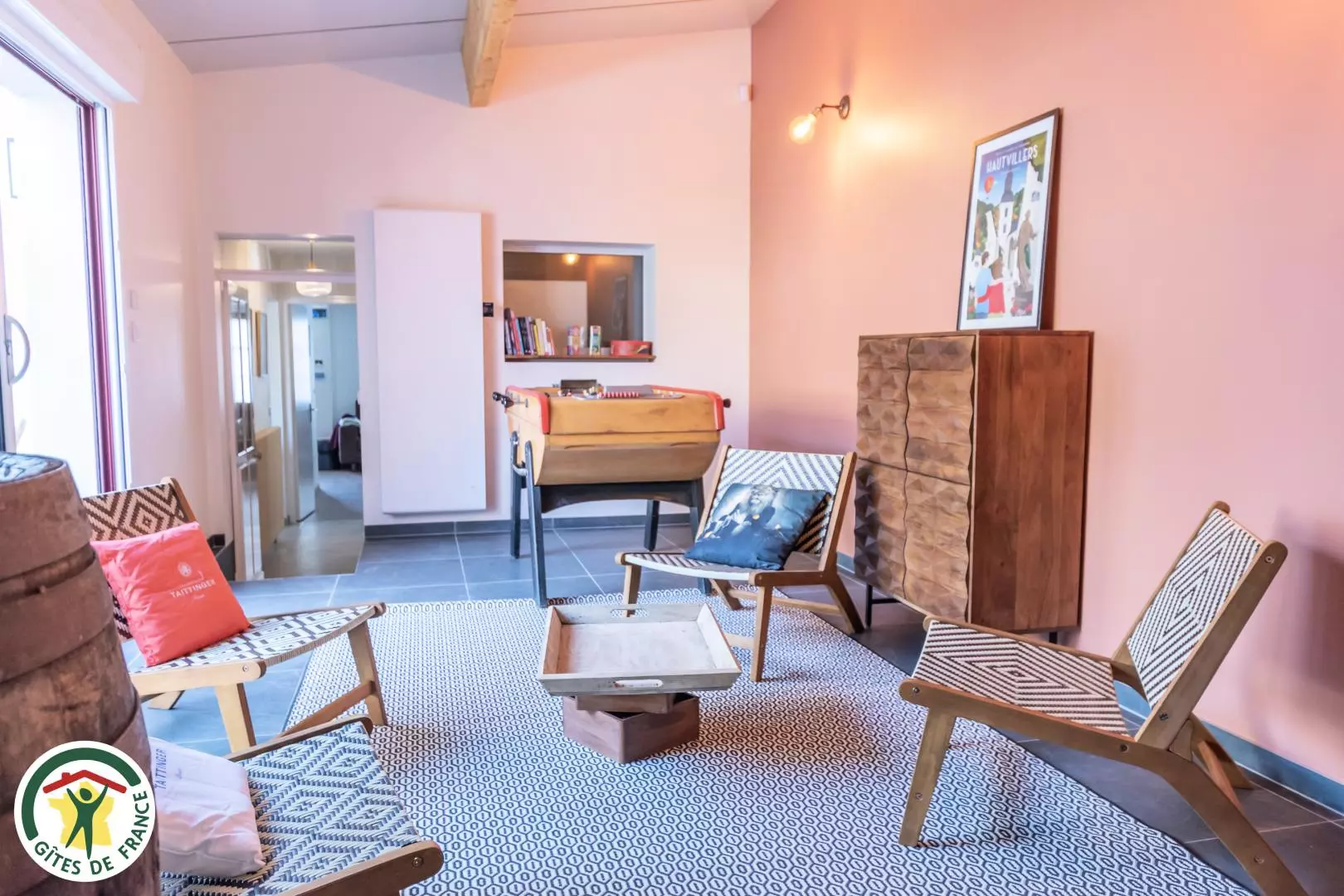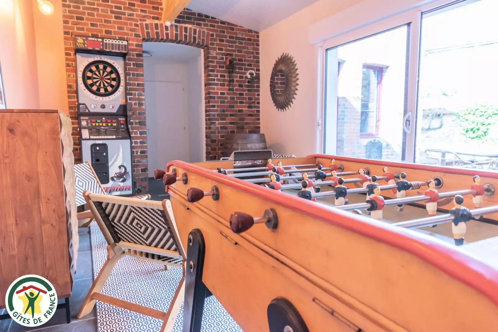 - Une salle de jeux avec foot sur table et bornes de fléchettes.