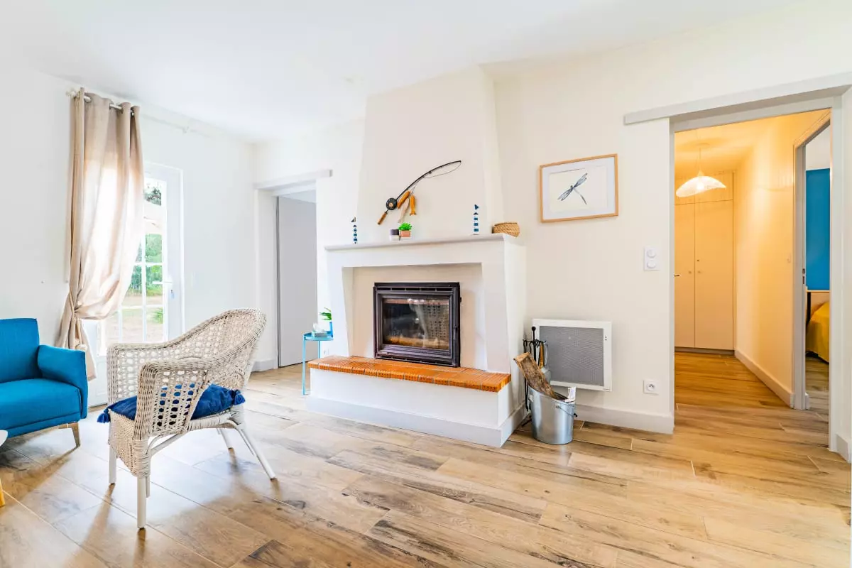 À l’intérieur, vous trouverez un espace de vie confortable composé d’un salon avec cheminée, d’un coin repas et d’une cuisine ouverte entièrement équipée, parfaite pour cuisiner et partager de bons moments.
