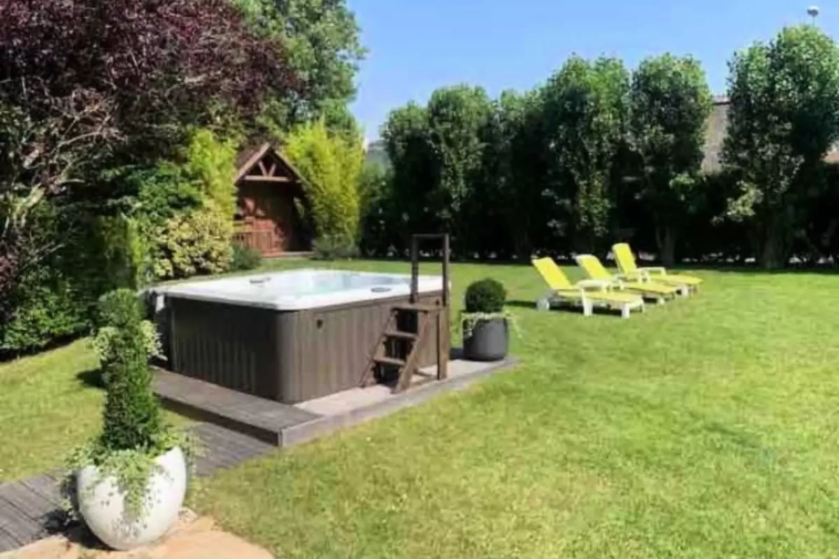 - un bel extérieur avec terrasse, jardin et bains à remous