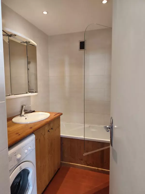 - une salle de bain avec baignoire -douche ;