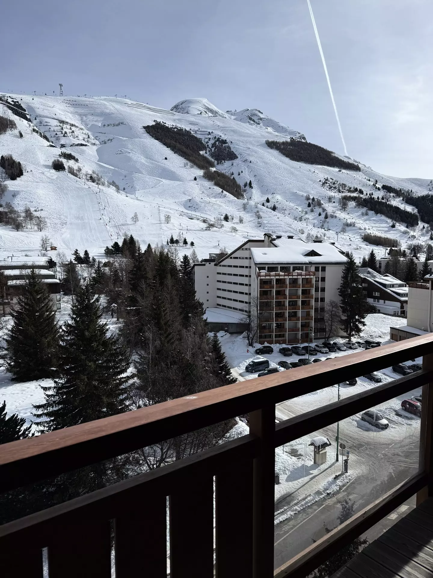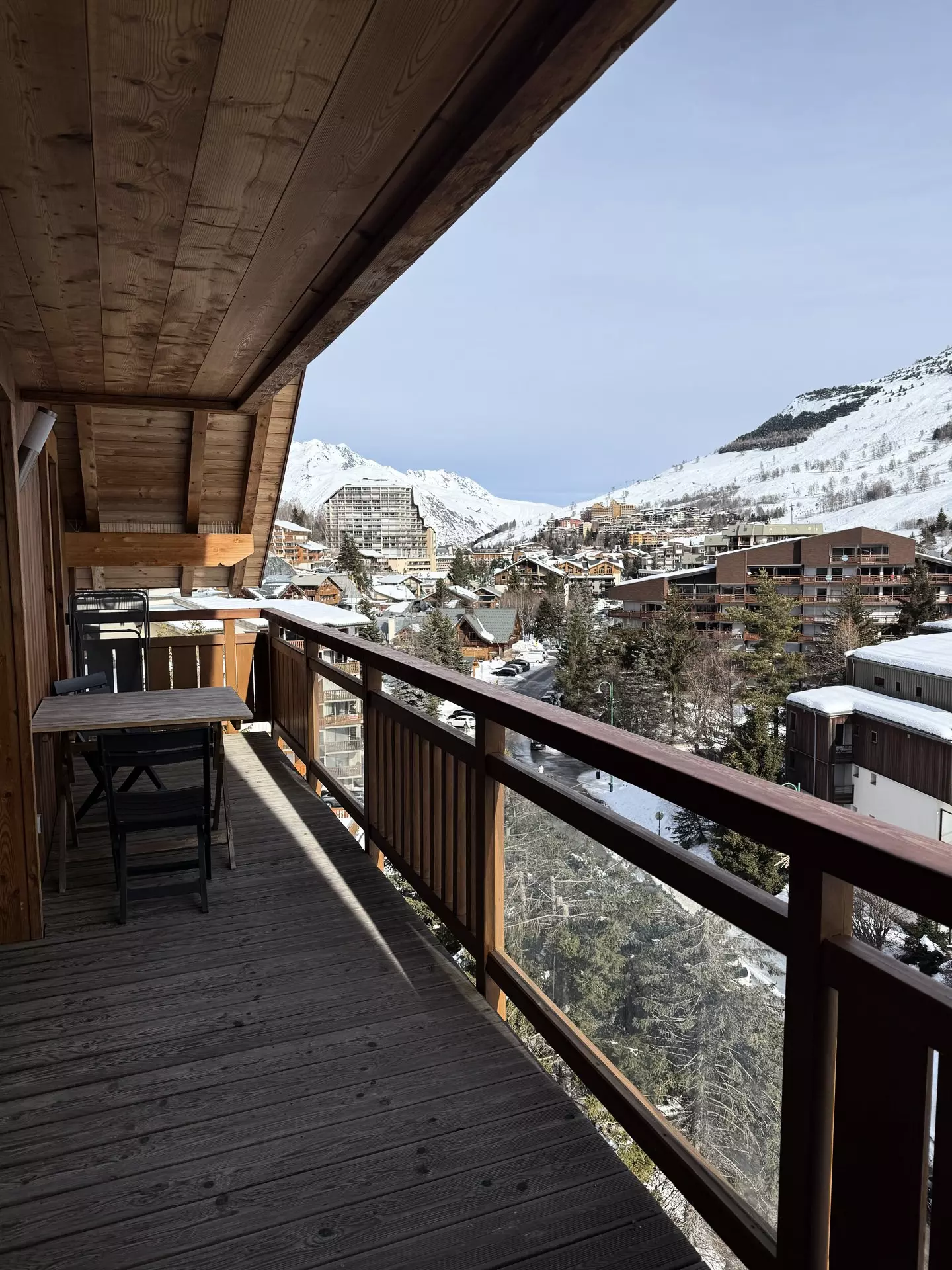 Grand appartement 3 pièces de 80m² pour 6 personnes. Il est situé au 5e étage avec ascenseur et possède un grand balcon Sud.