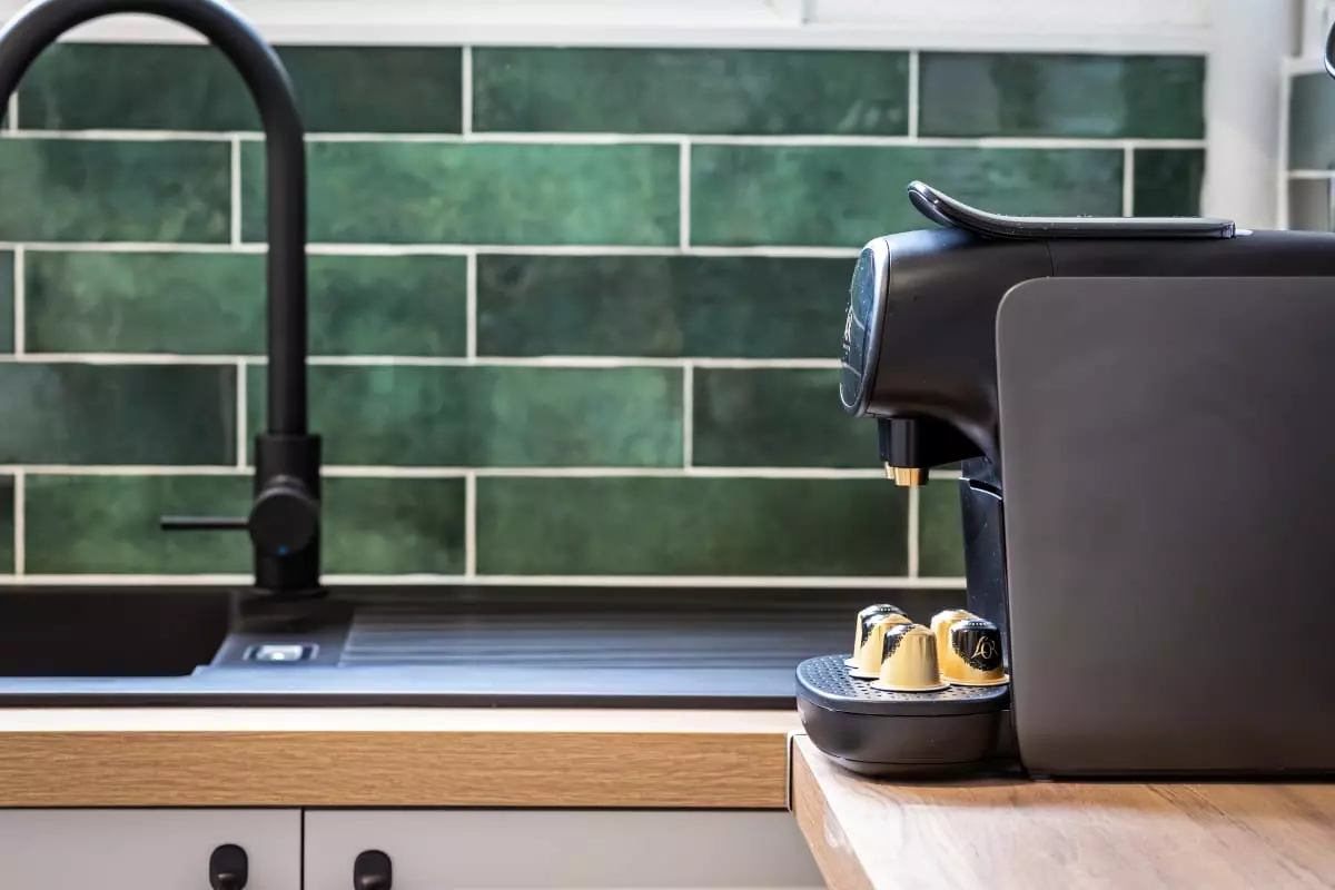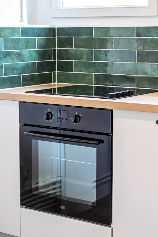 La cuisine est parfaitement aménagée et équipée ! Vous y trouverez tout le nécessaire de cuisine : des plaques de cuisson, une hotte, un four, un micro-ondes, un grille pain, une machine à café type Nespresso, une bouilloire, et un lave-vaisselle.
