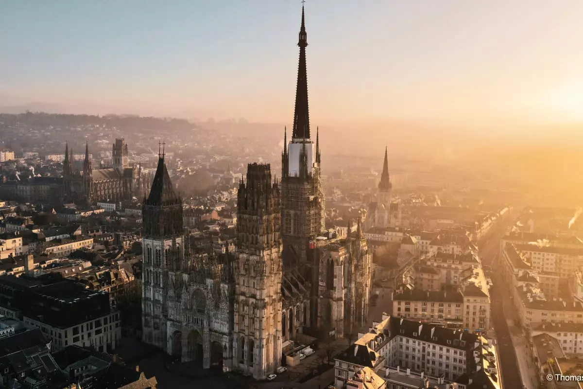 Rouen, dite la Ville aux cent clochers, est située au nord-ouest de la France et traversée par la Seine.