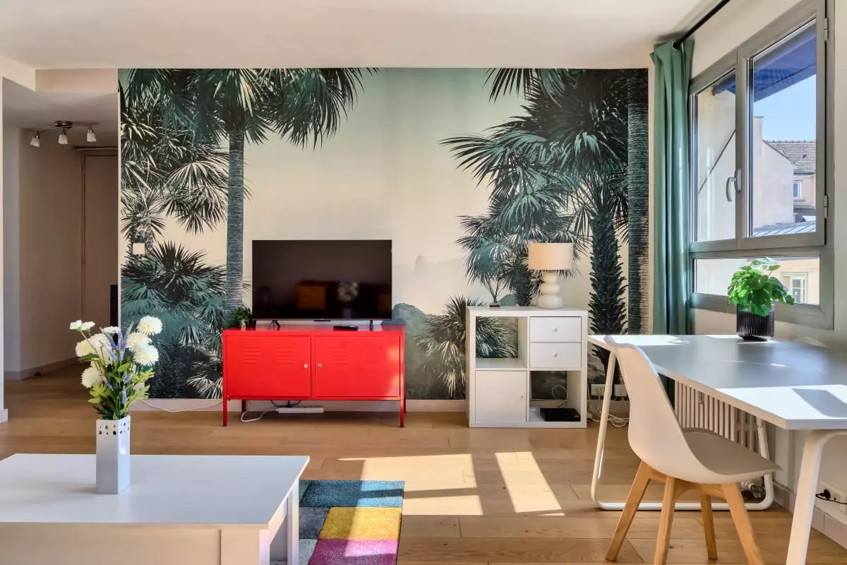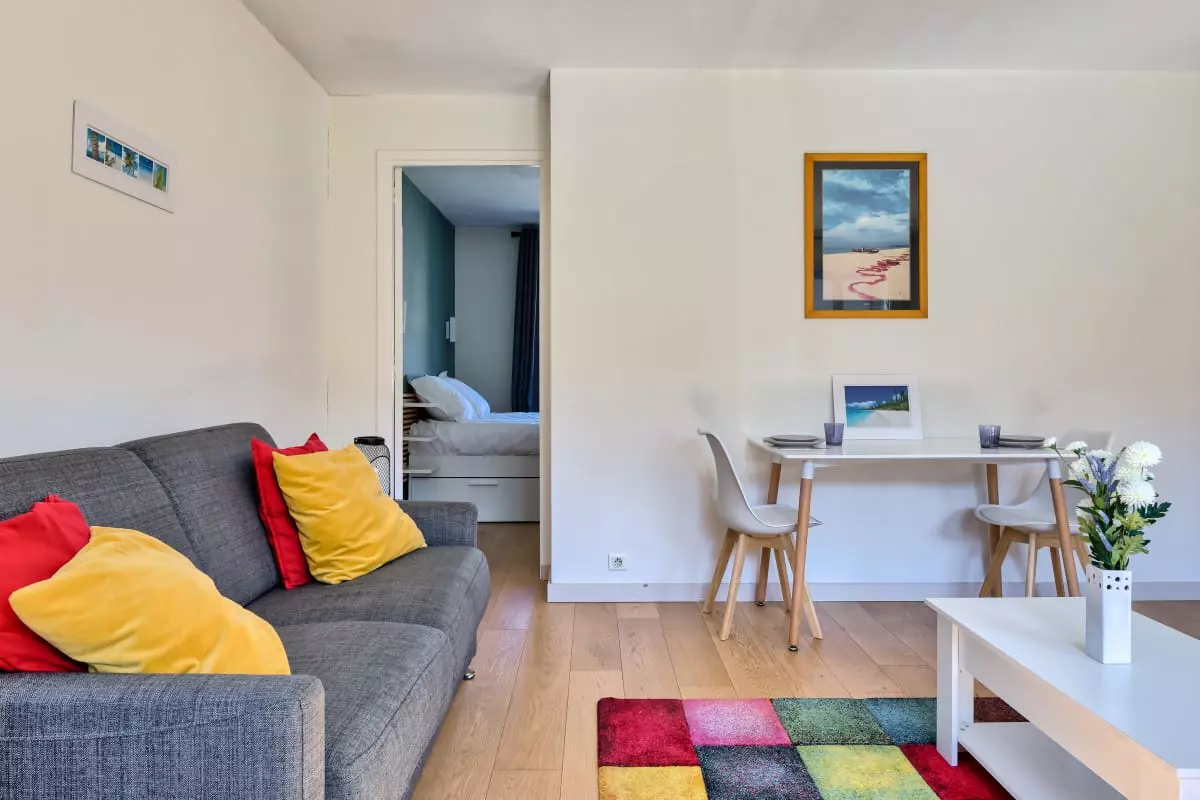 Le grand séjour-salon vous offre une pièce de vie agréable avec une grande télévision connectée et son canapé convertible deux places. Utilisez la table pour vos repas accessible depuis la cuisine ouverte entièrement aménagée et équipée offrant lave-linge, sèche-linge, four, micro-onde, grand réfrigérateur, congélateur, plaques de cuisson, lave-vaiselle, hotte, bouilloire, grille-pain ainsi que tout le nécessaire de cuisine !