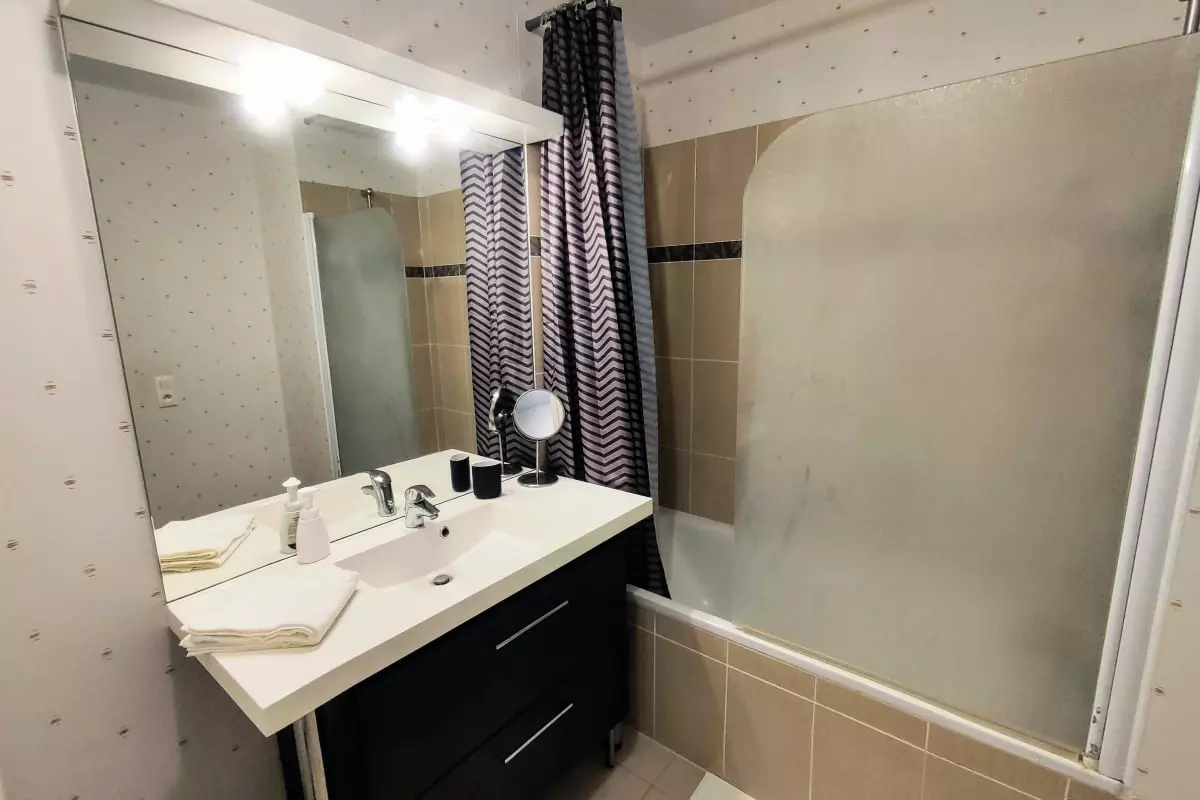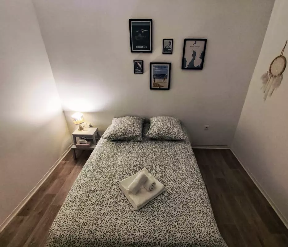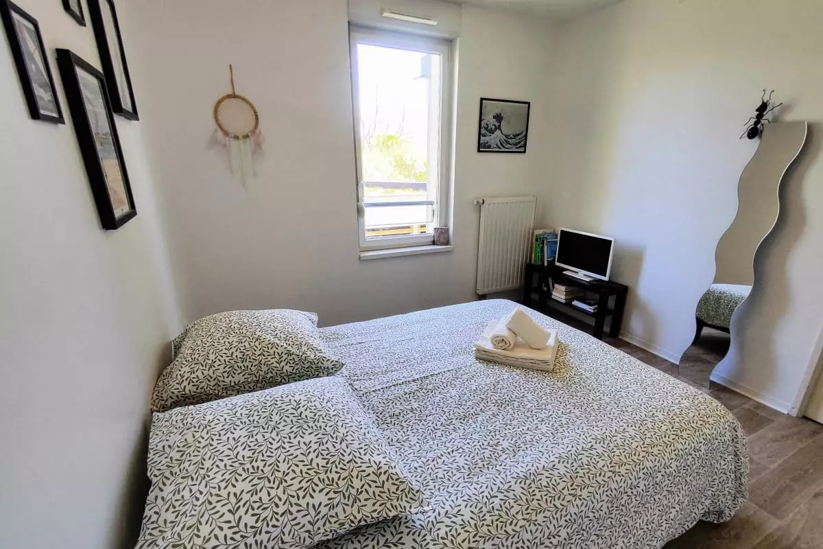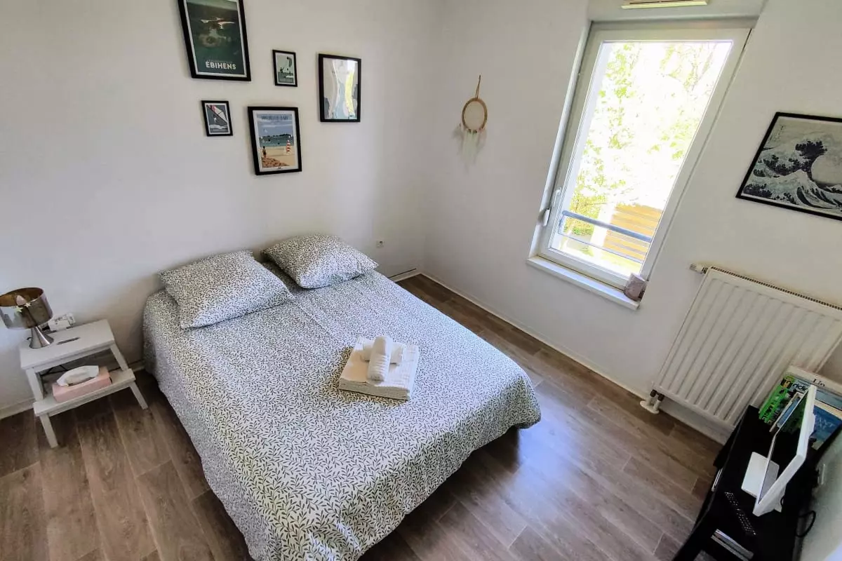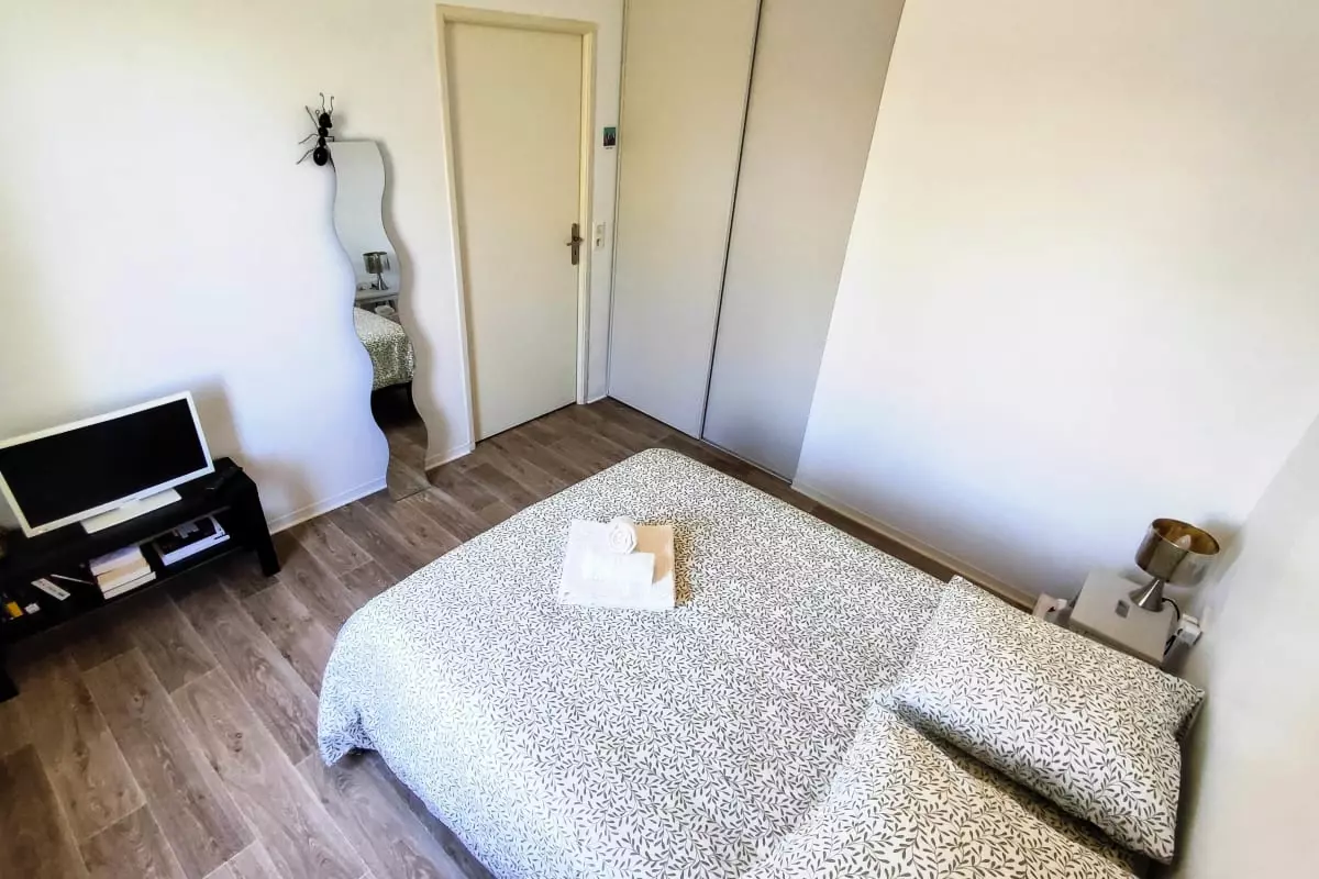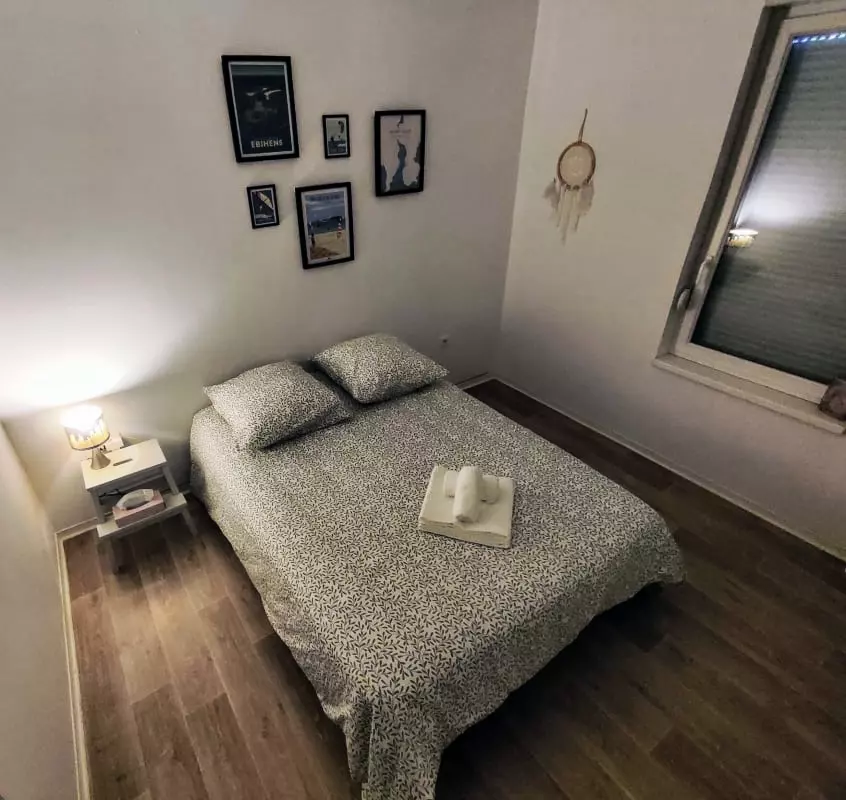 - une chambre cosy avec un lit double et un placard mural et un canapé-lit dans le salon permettant d'accueillir jusqu'à 4 voyageurs ; un lit bébé ;