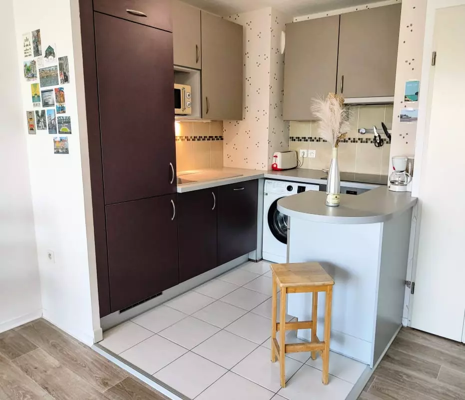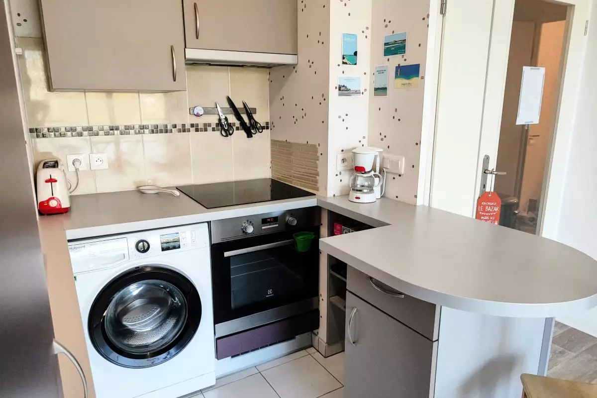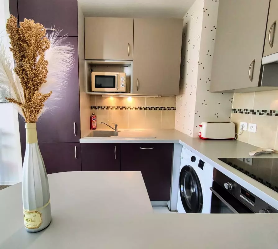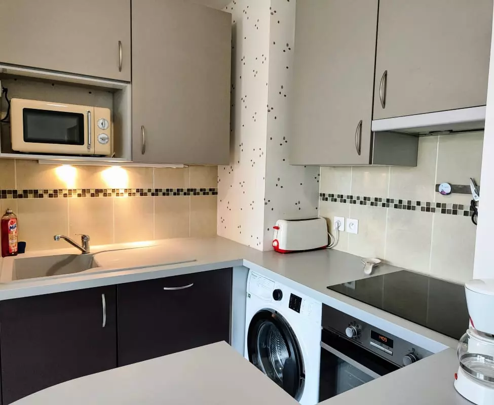 - une cuisine entièrement équipée avec un four, un micro-ondes, un lave-vaisselle, un lave-linge pratique pour les séjours prolongés.