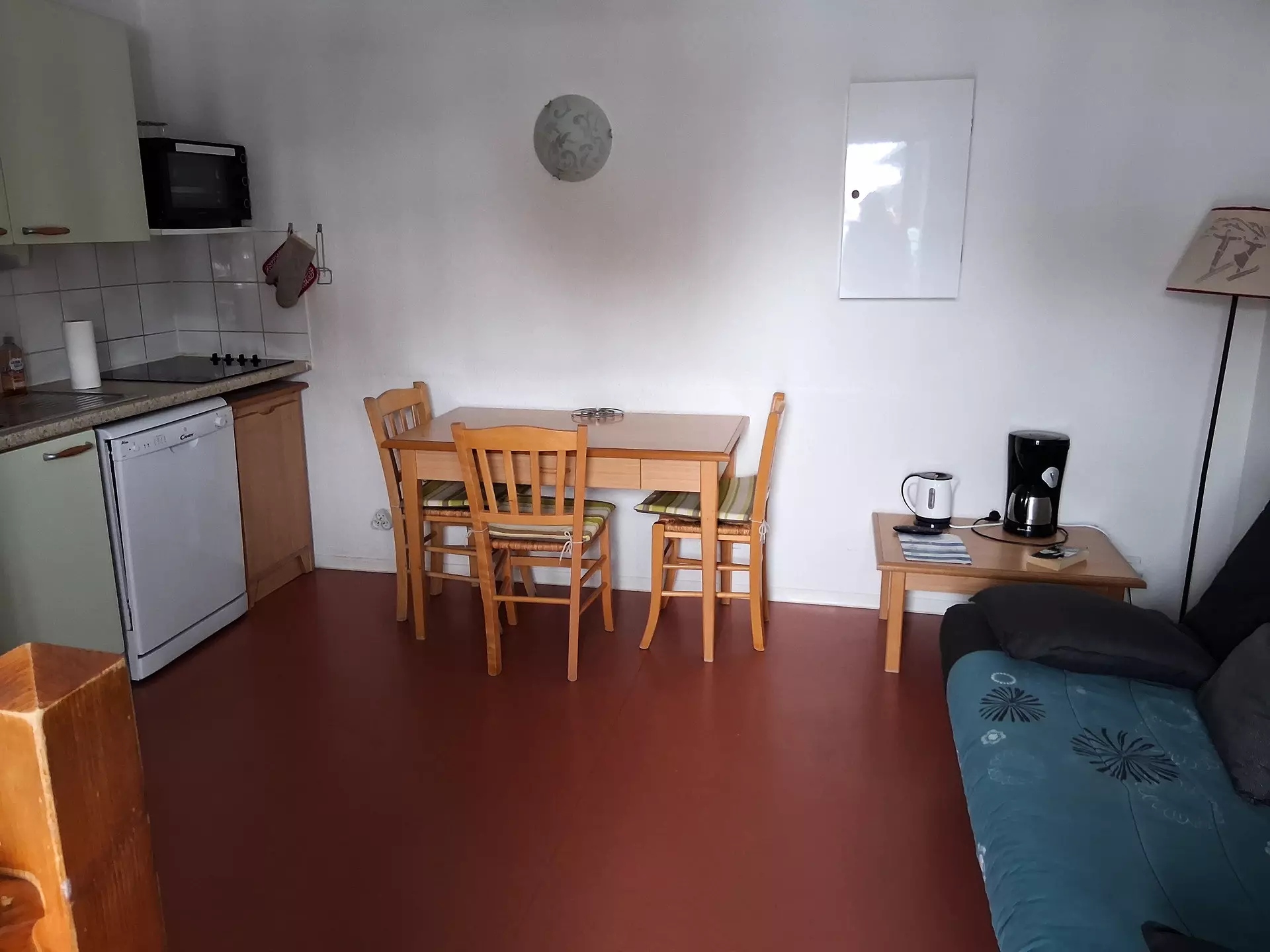 Pièce à vivre avec canapé-lit ,coin repas.