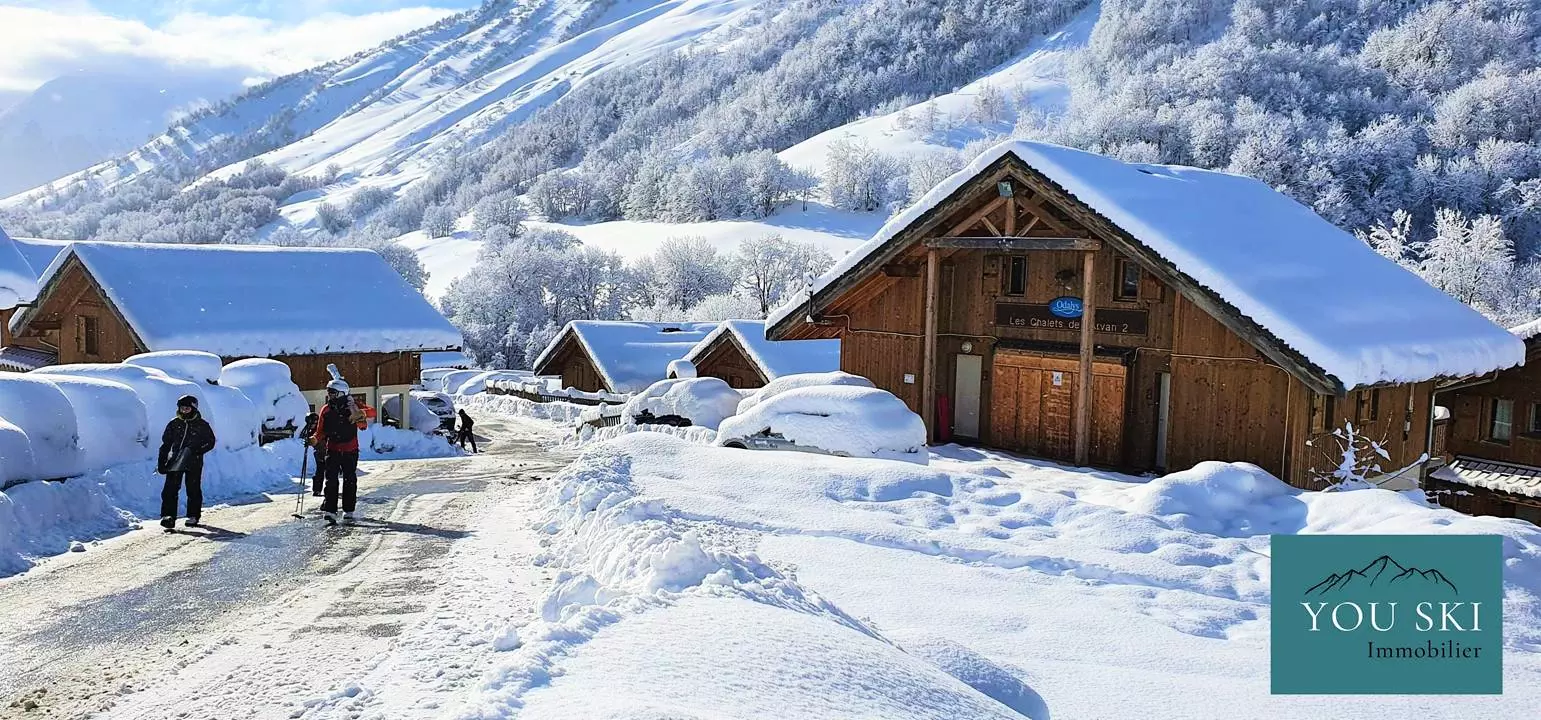 L'appartement se situe au sein de la résidence Les Chalets de l'Arvan, tout proche de l'église du village et au pied du col de la Croix de Fer, sur le domaine skiable des Sybelles.