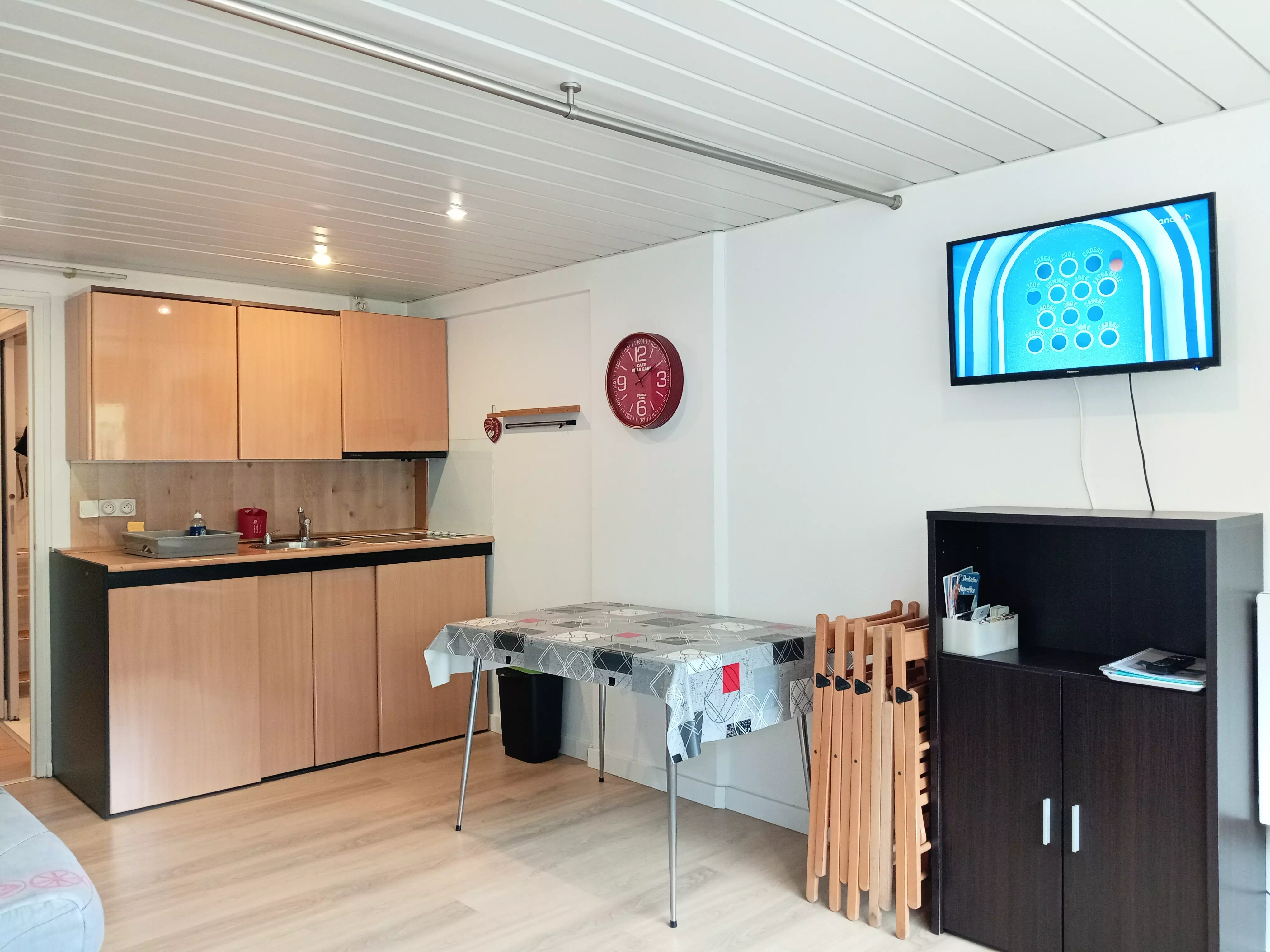 Les atouts de votre location : Ce logement lumineux, situé en plein centre-village, offre un accès direct aux pistes et se trouve à proximité immédiate des commerces et activités. Idéal pour un séjour à la montagne, il dispose d'un séjour avec deux canapés-lits, d'une cuisine américaine parfaitement équipée (micro-ondes, plaque vitrocéramique, cafetière, bouilloire, grille-pain, réfrigérateur avec freezer et autocuiseur), et d'une salle de bain avec douche, sèche-serviettes et rangements.