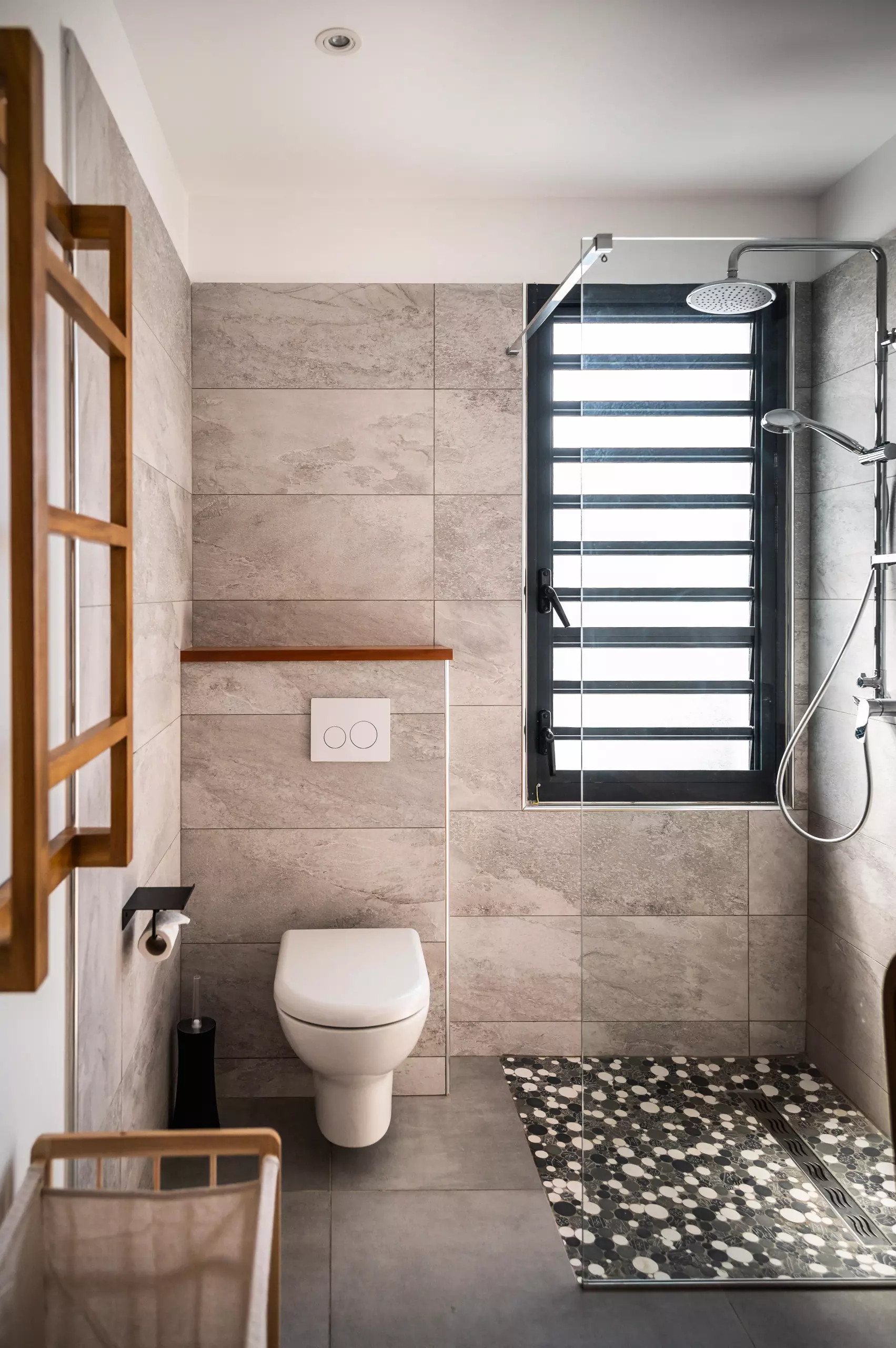 L'appartement dispose d'une chambre climatisée avec une literie haut de gamme, assurant un confort optimal. Une salle de bain fonctionnelle et élégante complète cet espace intime.