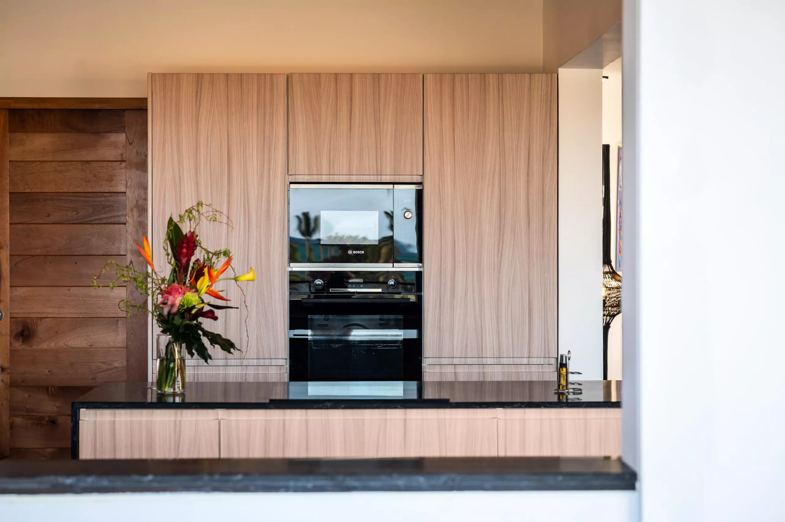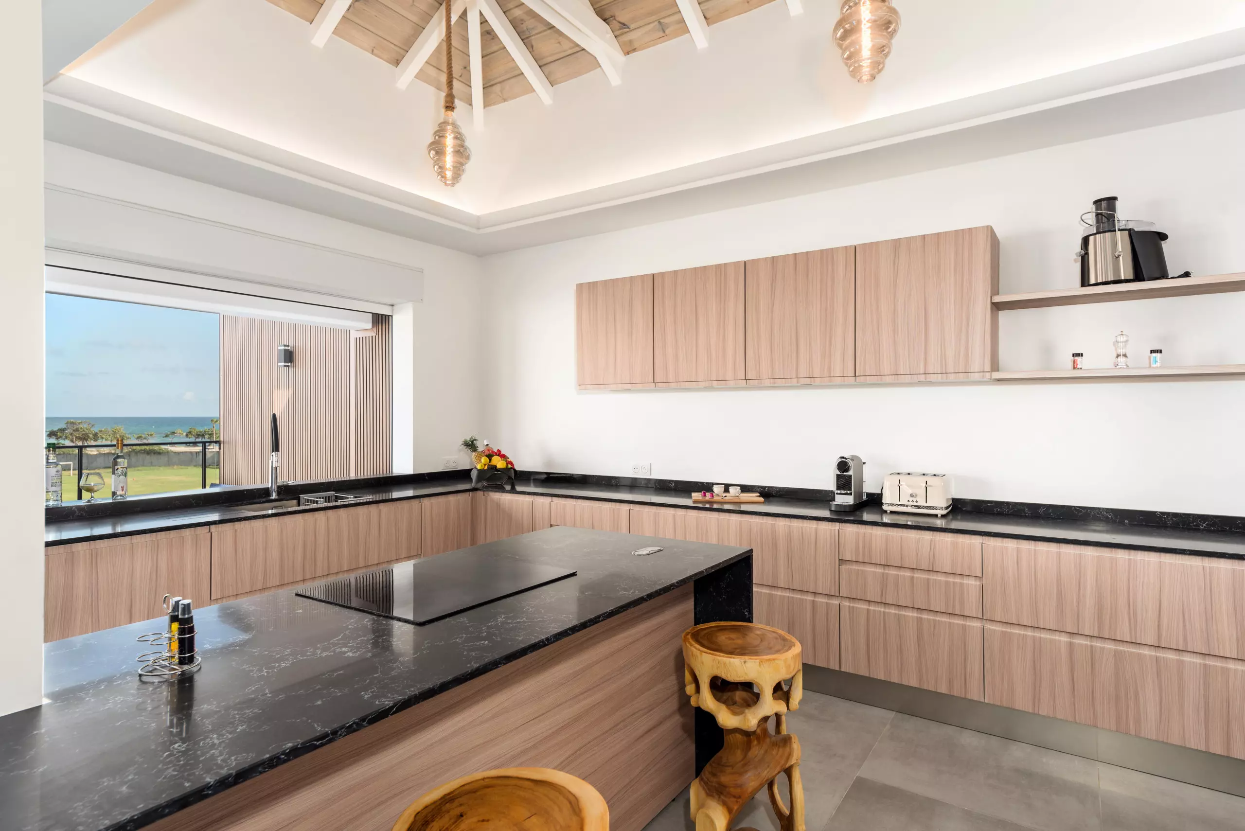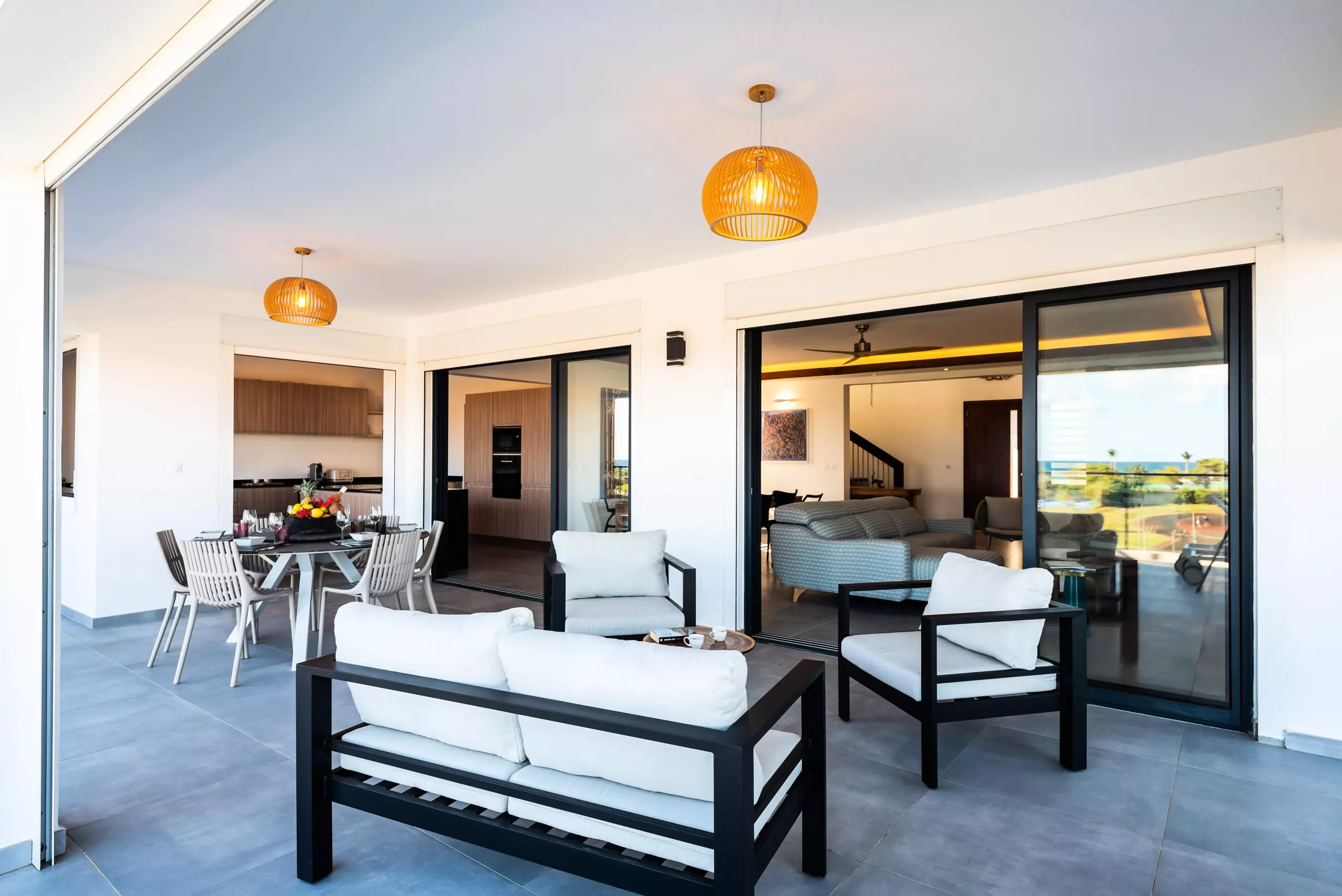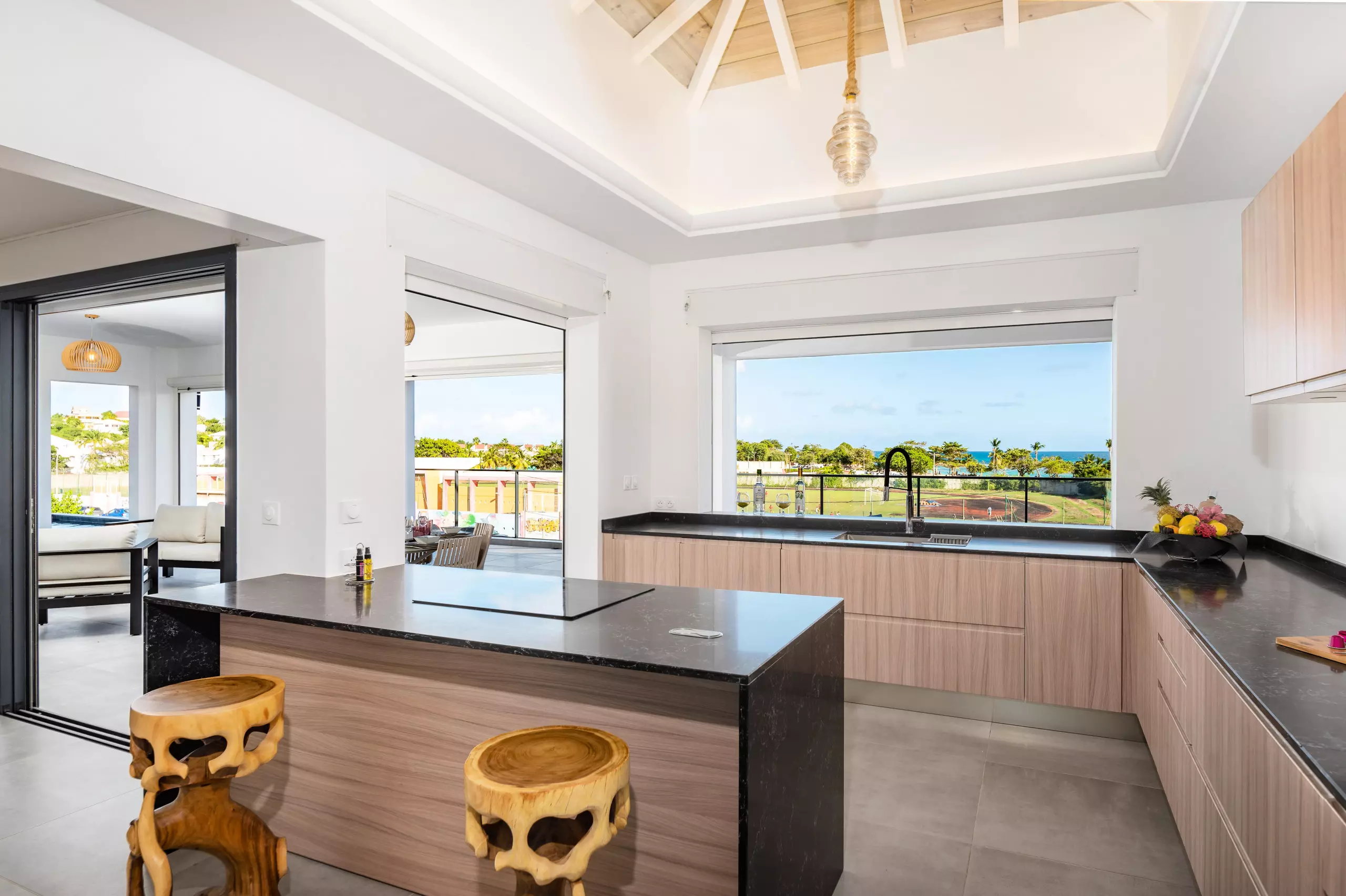 Une cuisine équipée, ouverte sur la terrasse