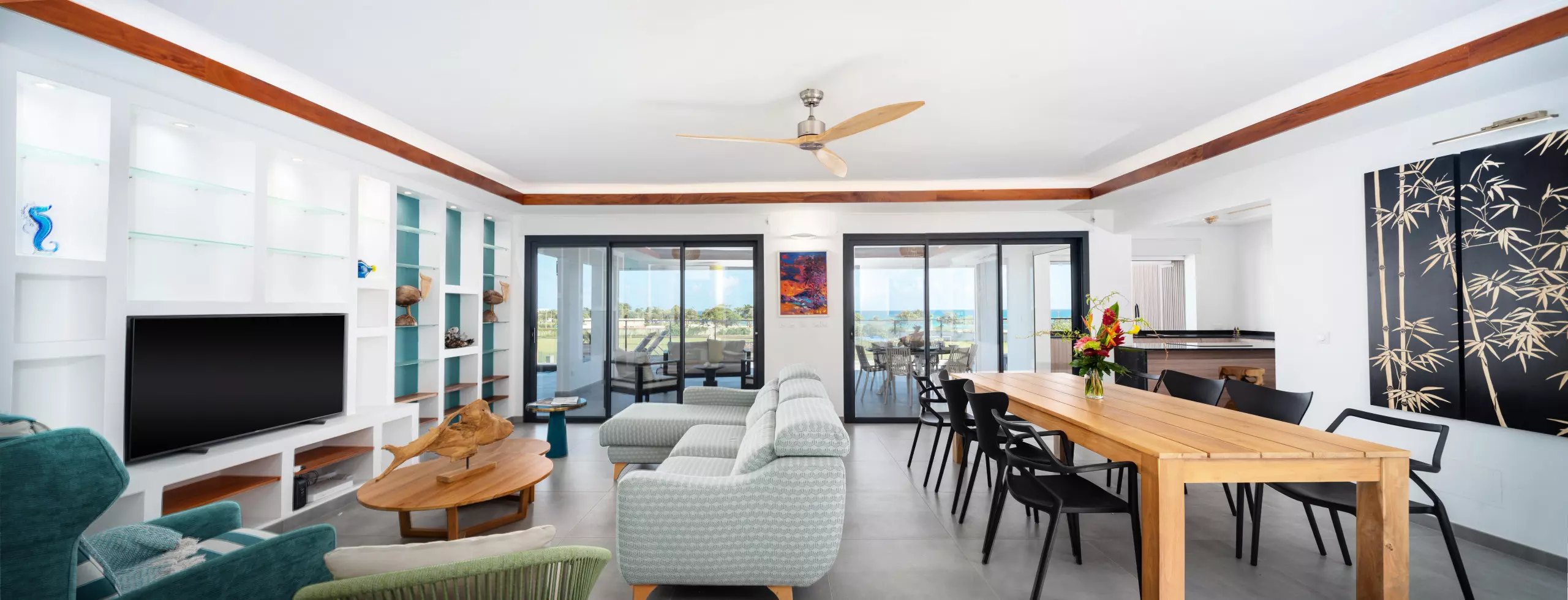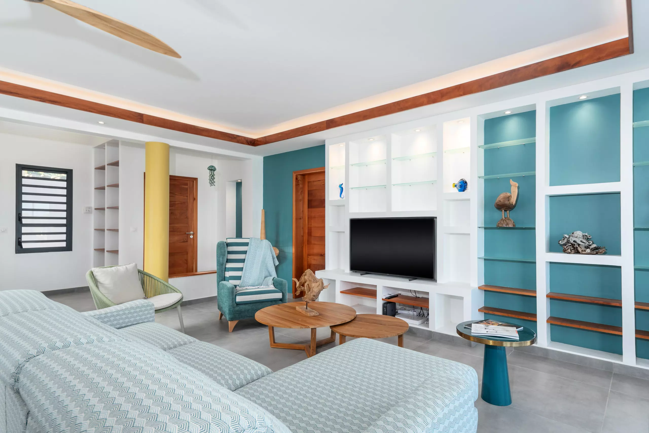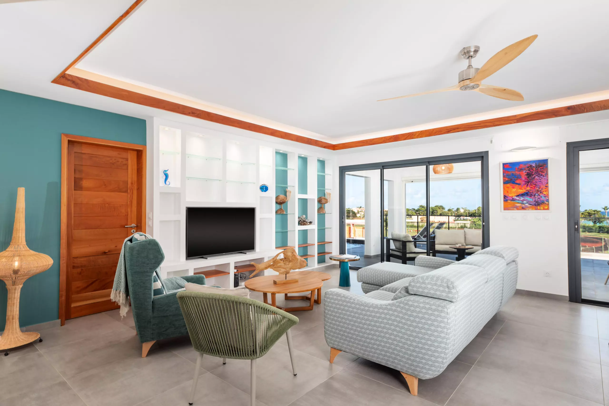 Un confortable salon avec vue sur mer