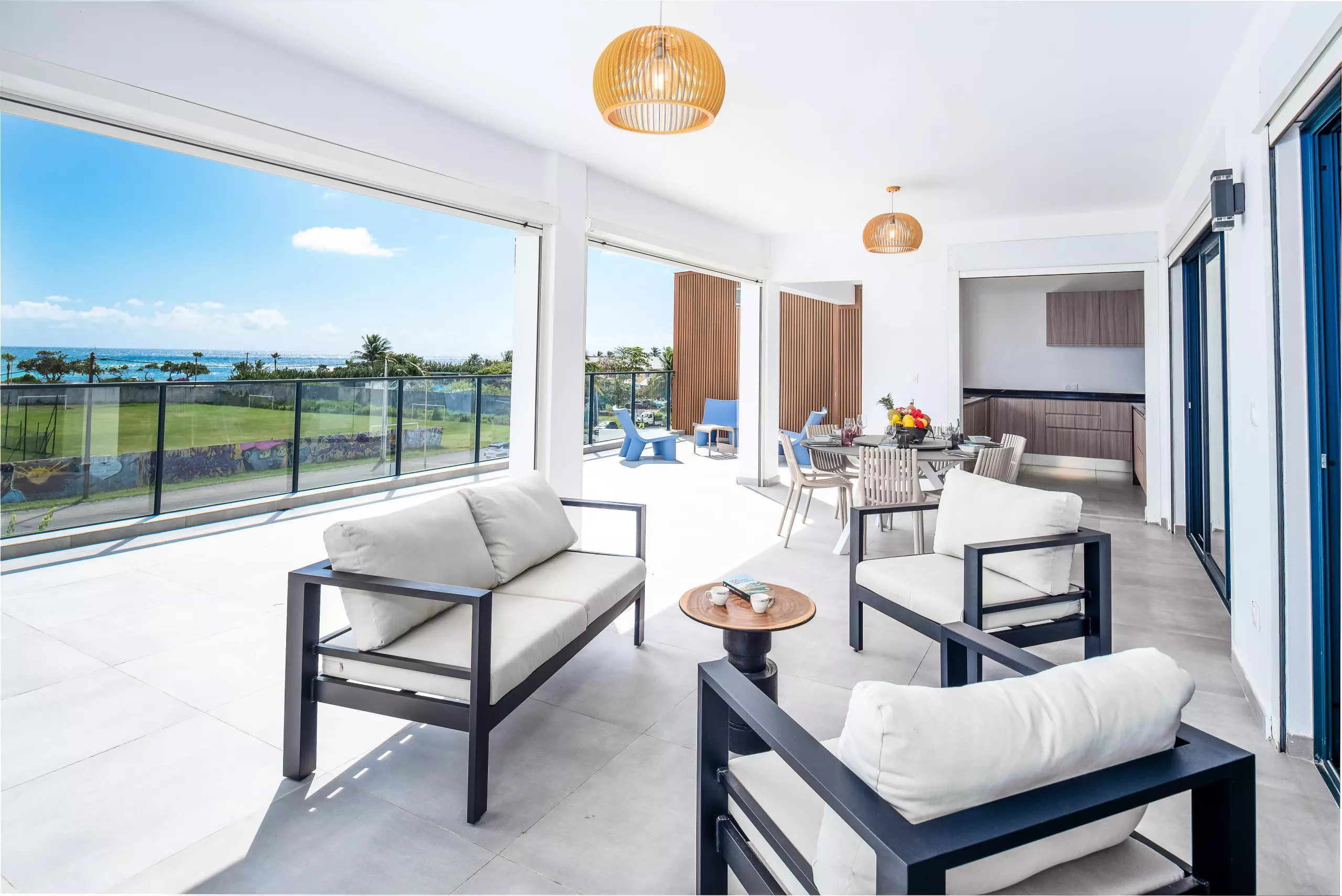 Au cœur du centreville de SaintFranois, la villa Claire est un ensemble composé d'une villa de haut standing de 3 chambres et d'un appartement de prestige de 2 pièces, arborant une architecture moderne et élégante à 5 minutes à pied de la plage des Raisins Clairs !