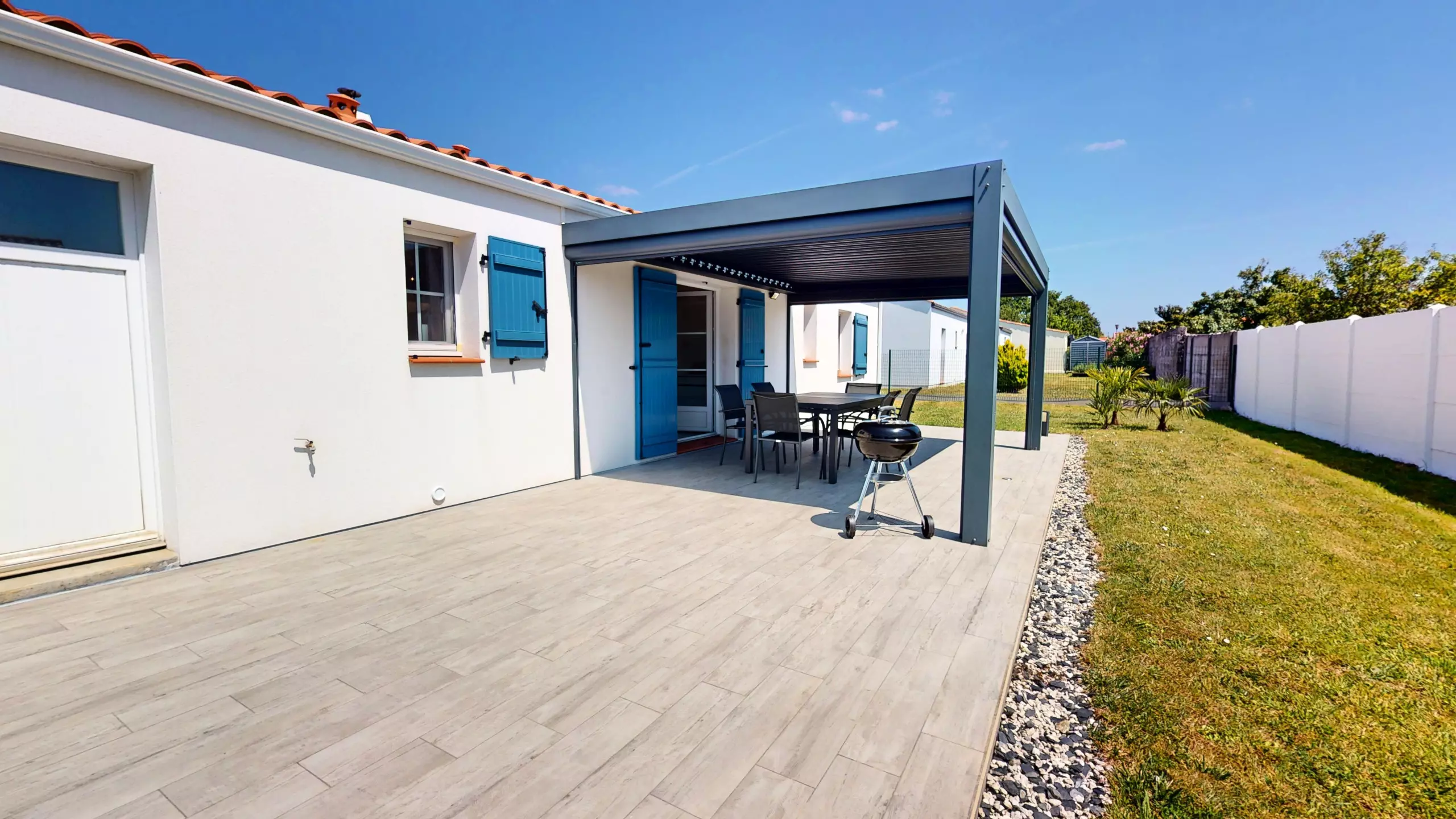 - ? Terrasse ombragée sous une grande tonnelle, idéale pour les repas en extérieur