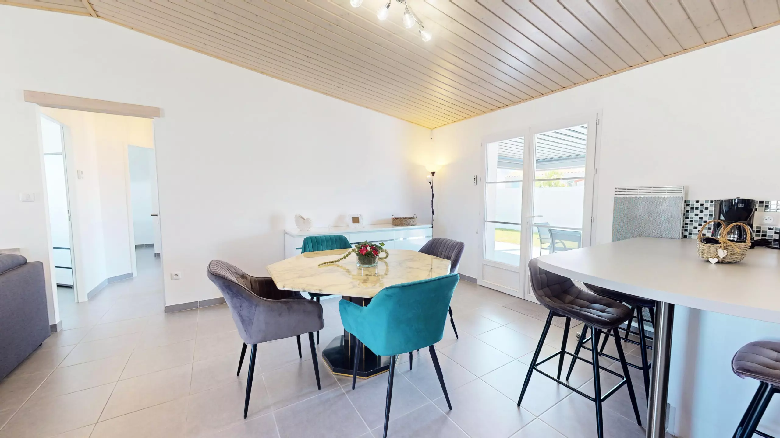 - ? Espace bar avec tabourets hauts pour vos petits-déjeuners ou apéros partagés