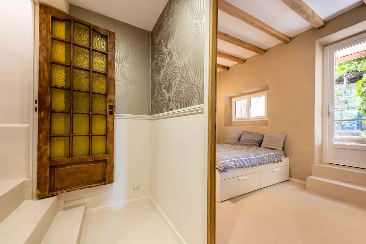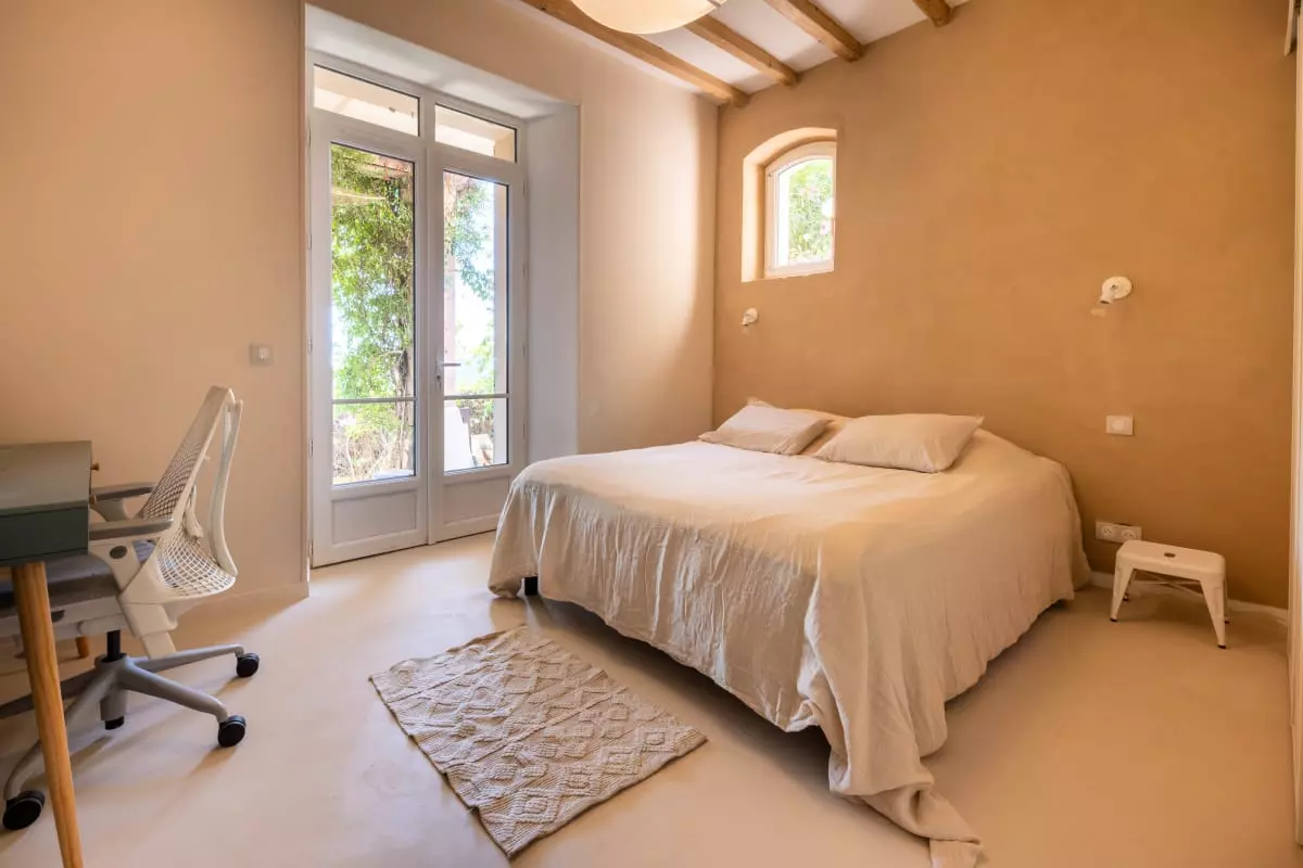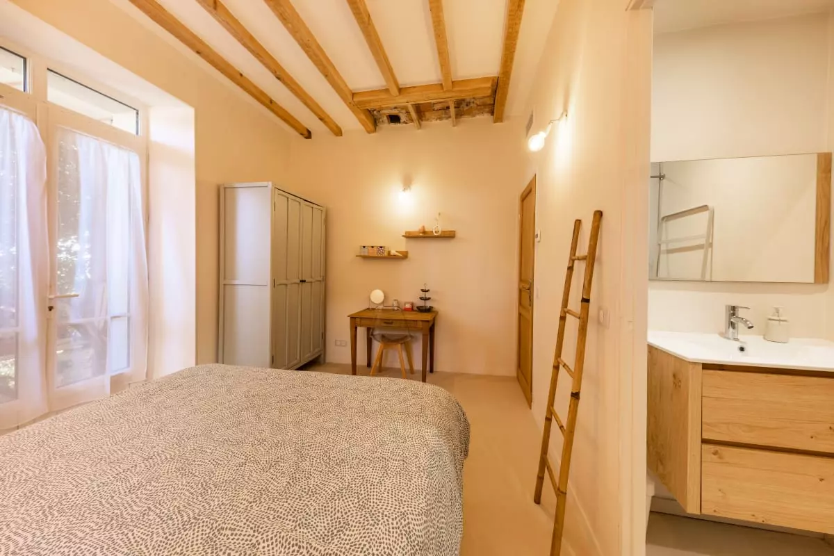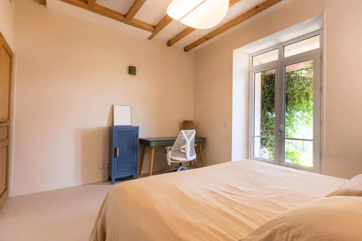 • Cachet authentique : volets provençaux, façade rose d’origine, poutres apparentes