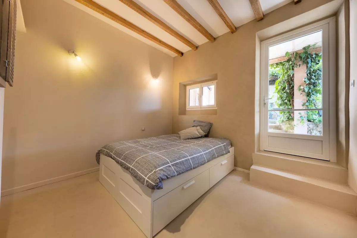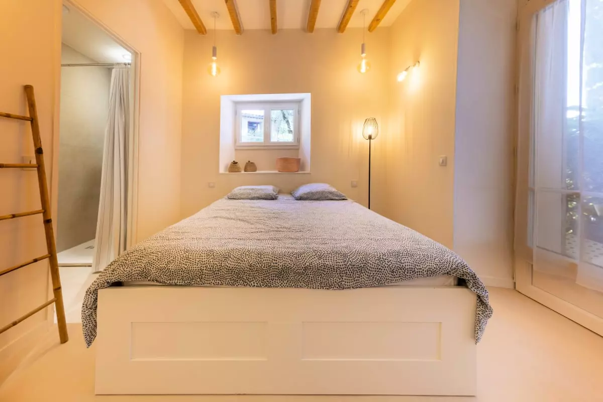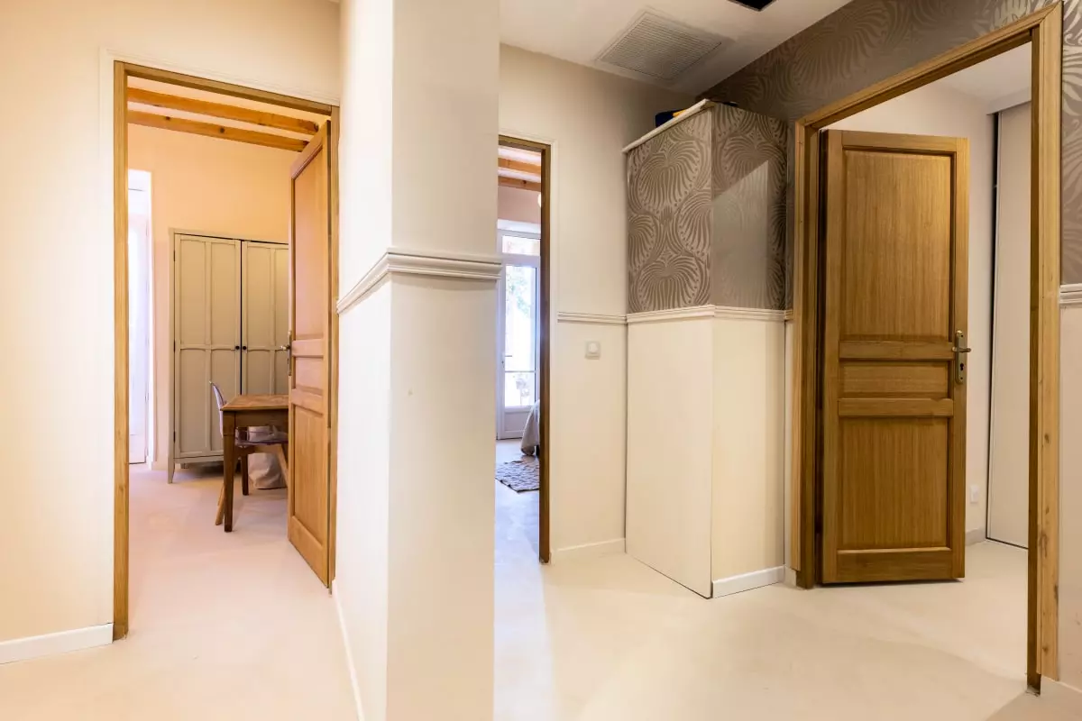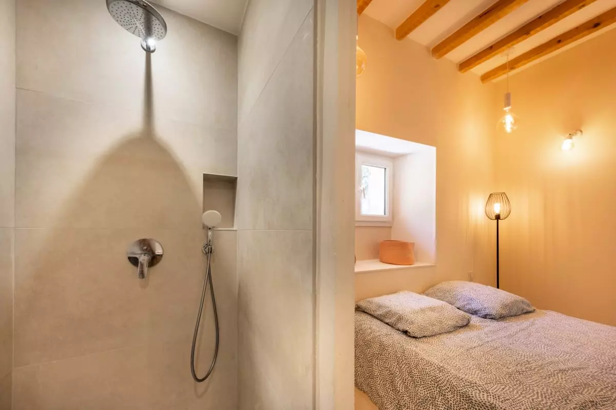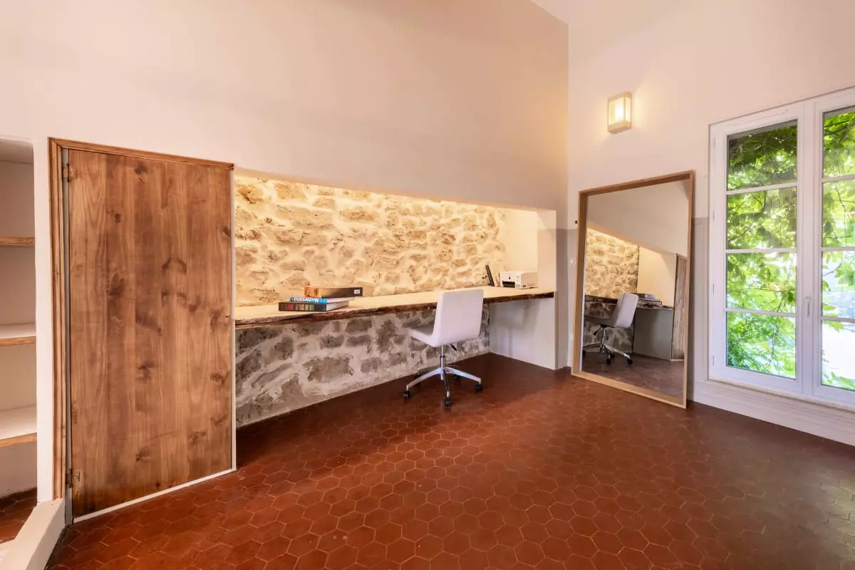 • Cachet authentique : volets provençaux, façade rose d’origine, poutres apparentes