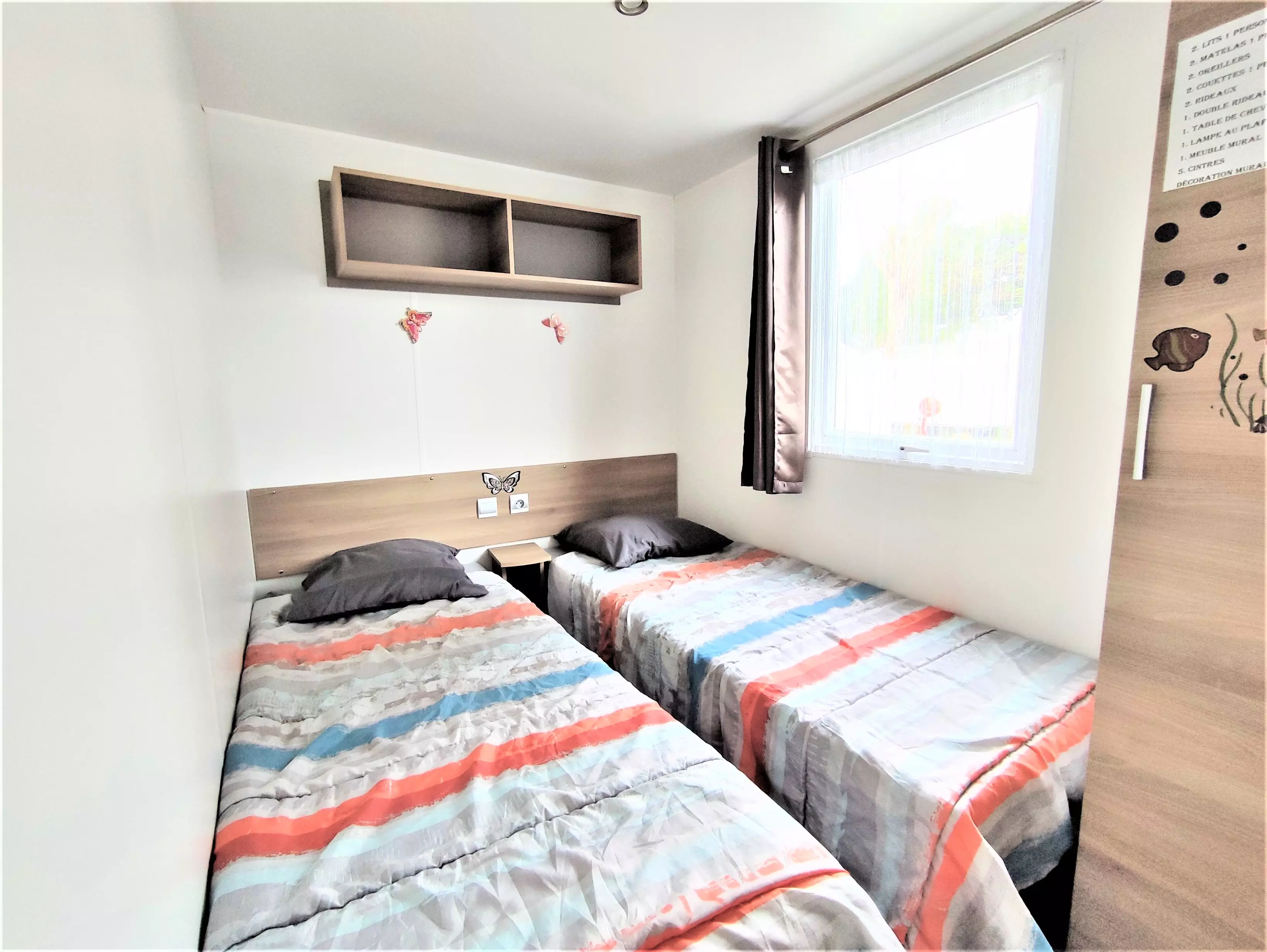 - Equipements chambres : 2 chambres avec 2 lits simples et 1 chambre avec 1 lit double.
