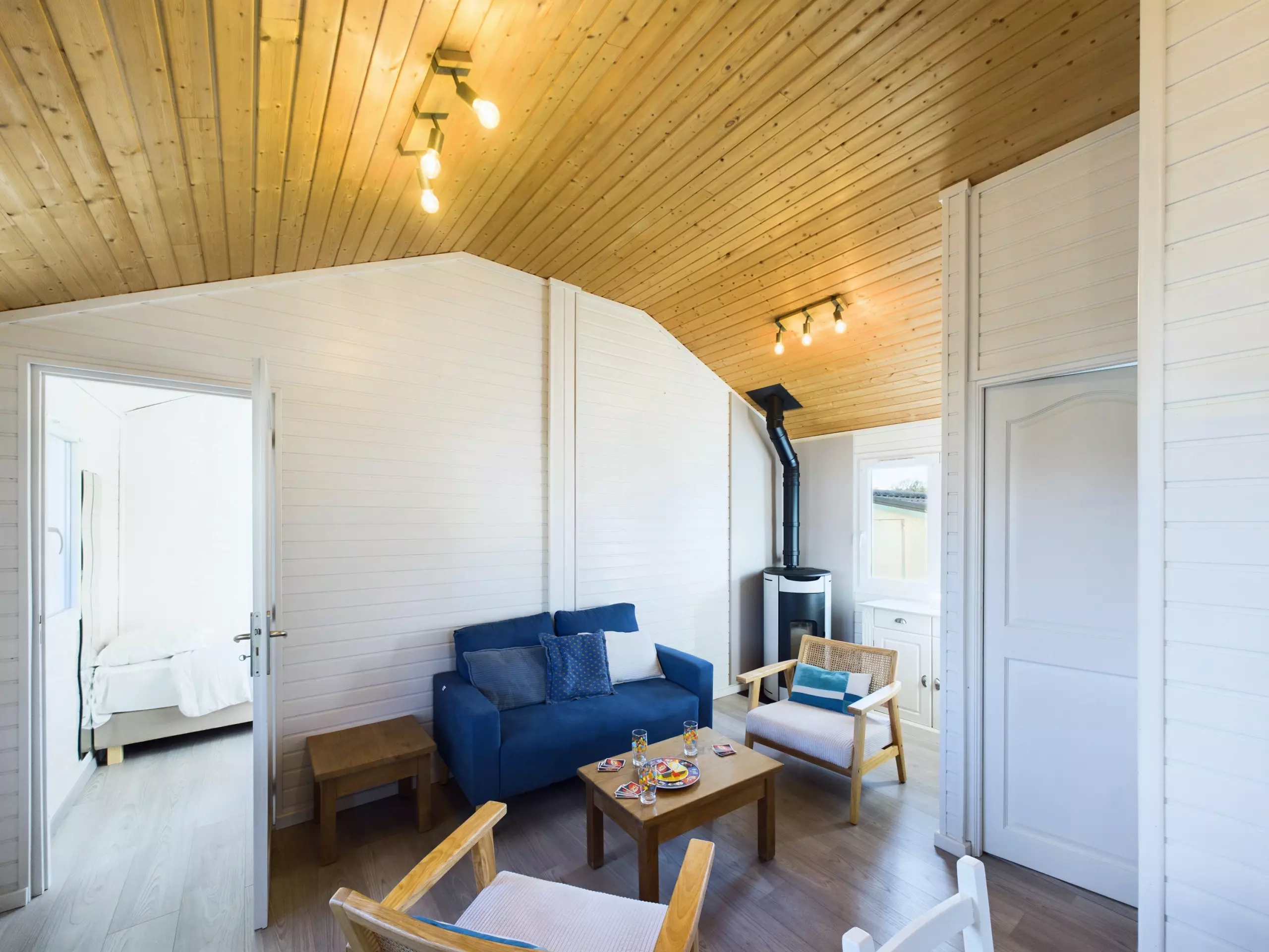 Dans ce chalet, vous trouverez un espace salon confortable avec un coin canapé et une télévision. La salle à manger se complète d'une cuisine entièrement équipée, comprenant un réfrigérateur-congélateur, un four, un micro-ondes, une bouilloire, une cafetière Nespresso, un grille-pain et tous les ustensiles nécessaires à vos préparations culinaires.