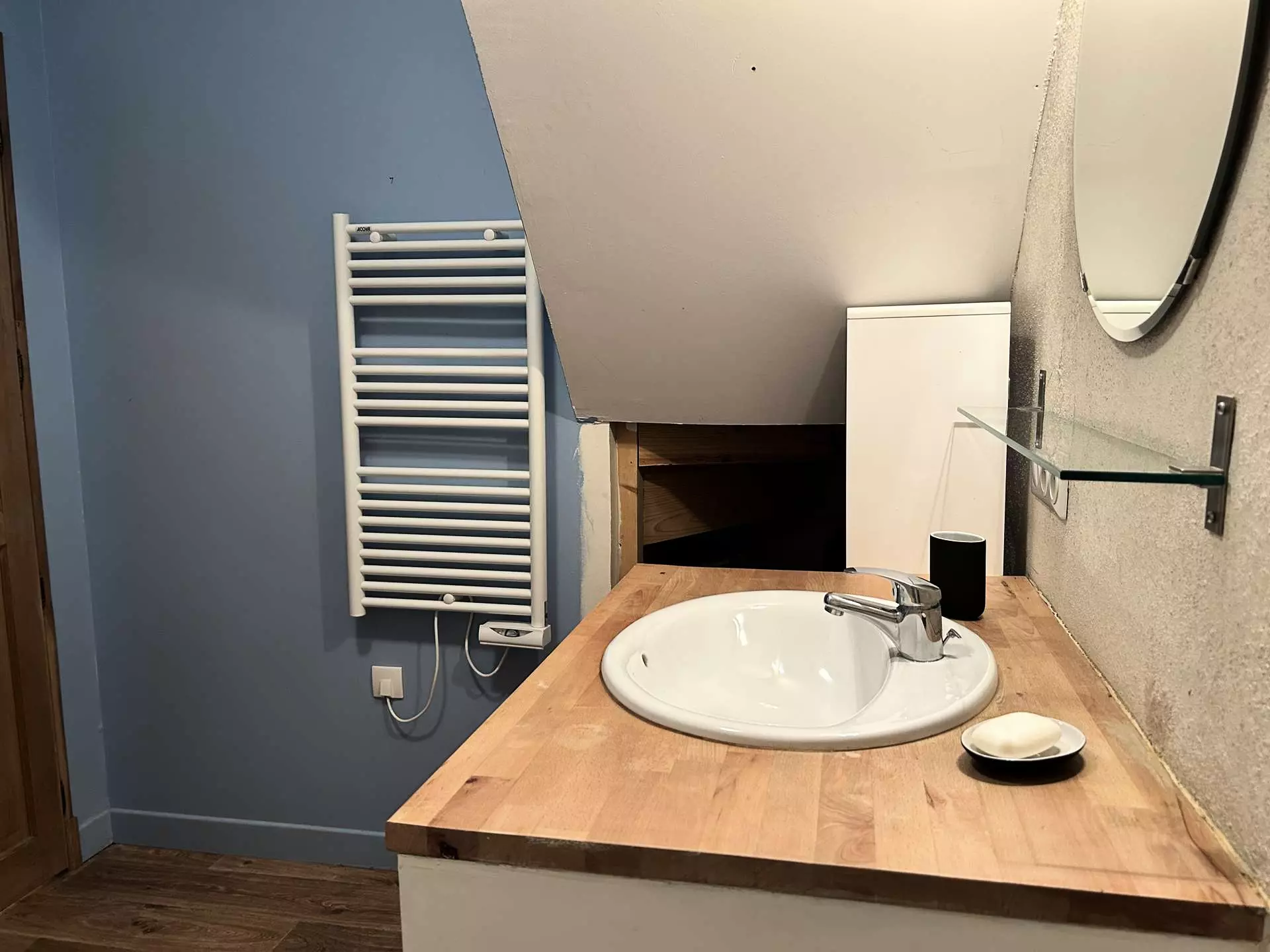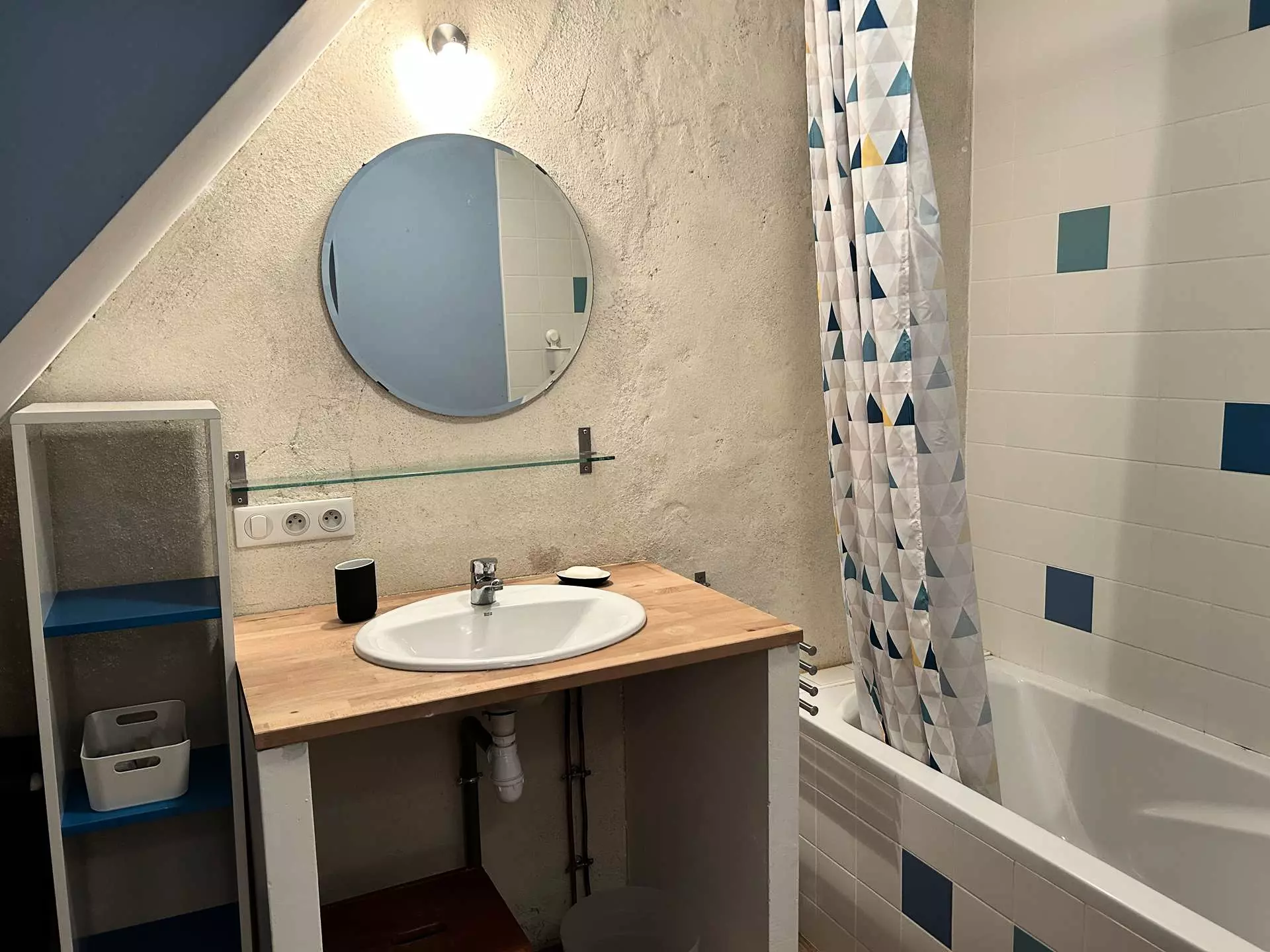 - Une salle d'eau avec baignoire et vasque ;
