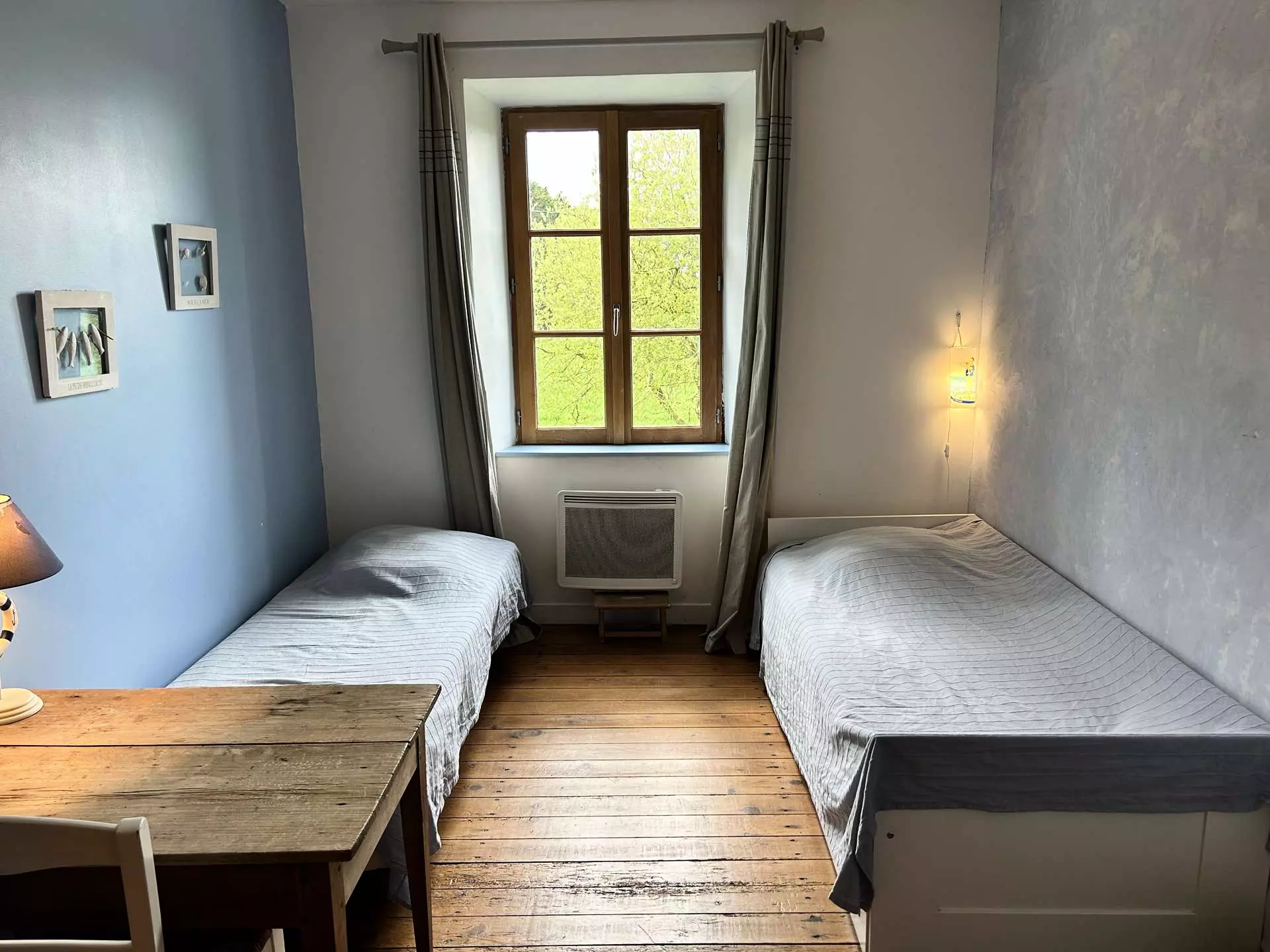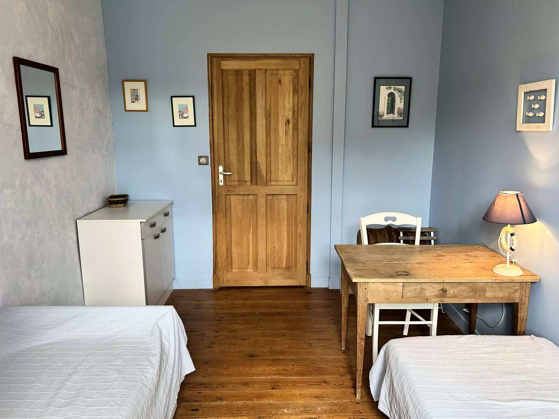 - Une seconde chambre offrant deux couchages individuels de dimension standard (90x190cm) avec couettes et oreillers ;