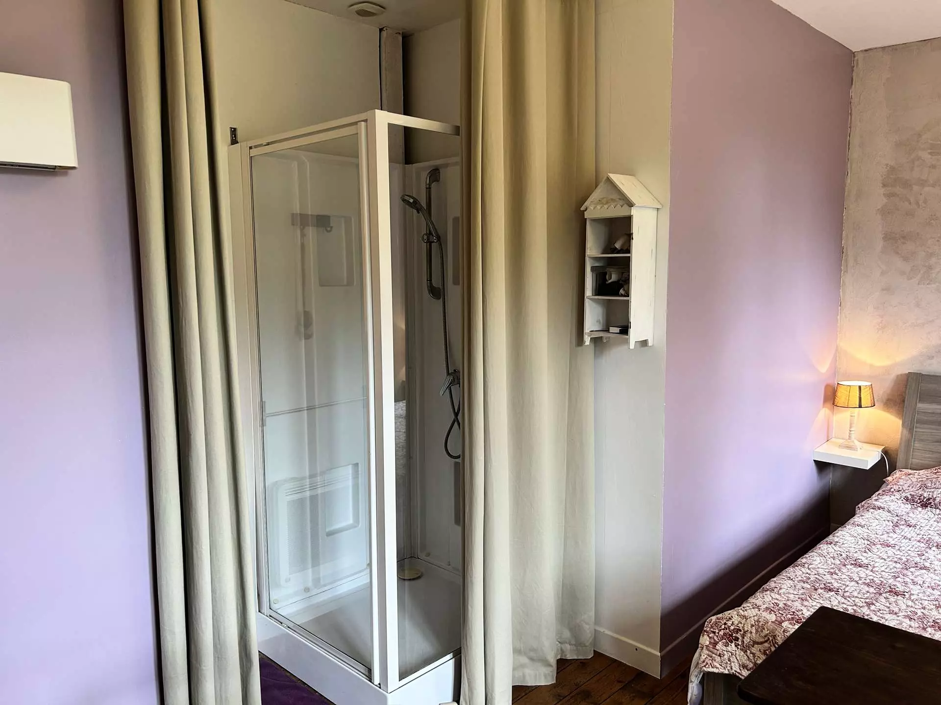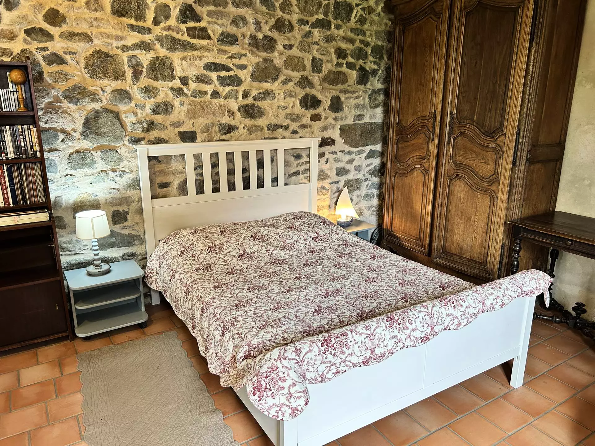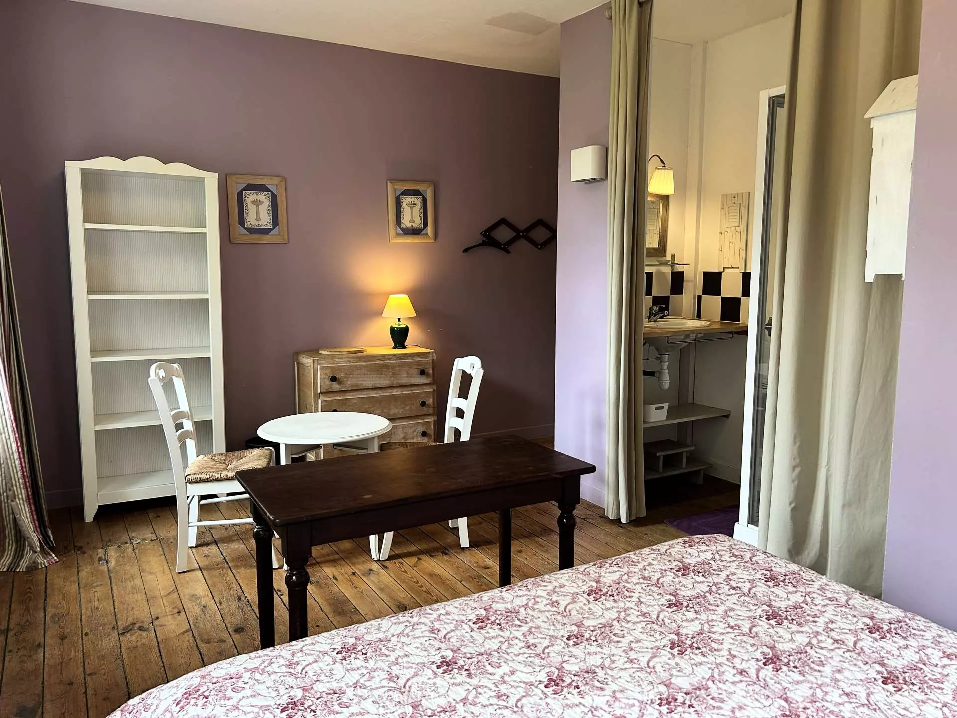 - Une première chambre disposant d'un couchage double (160x200cm) ainsi que d'une salle d'eau attenante avec douche et vasque ;