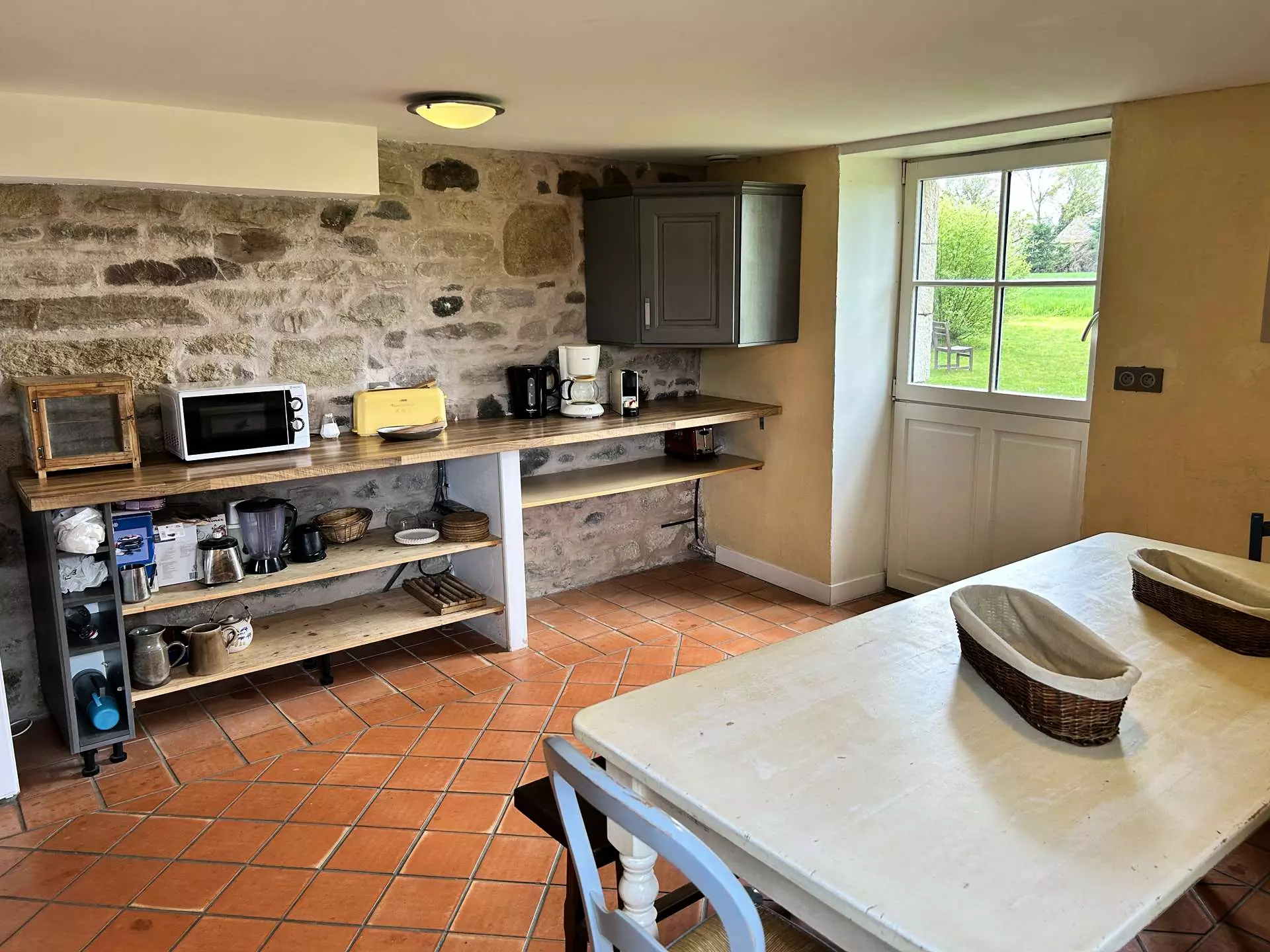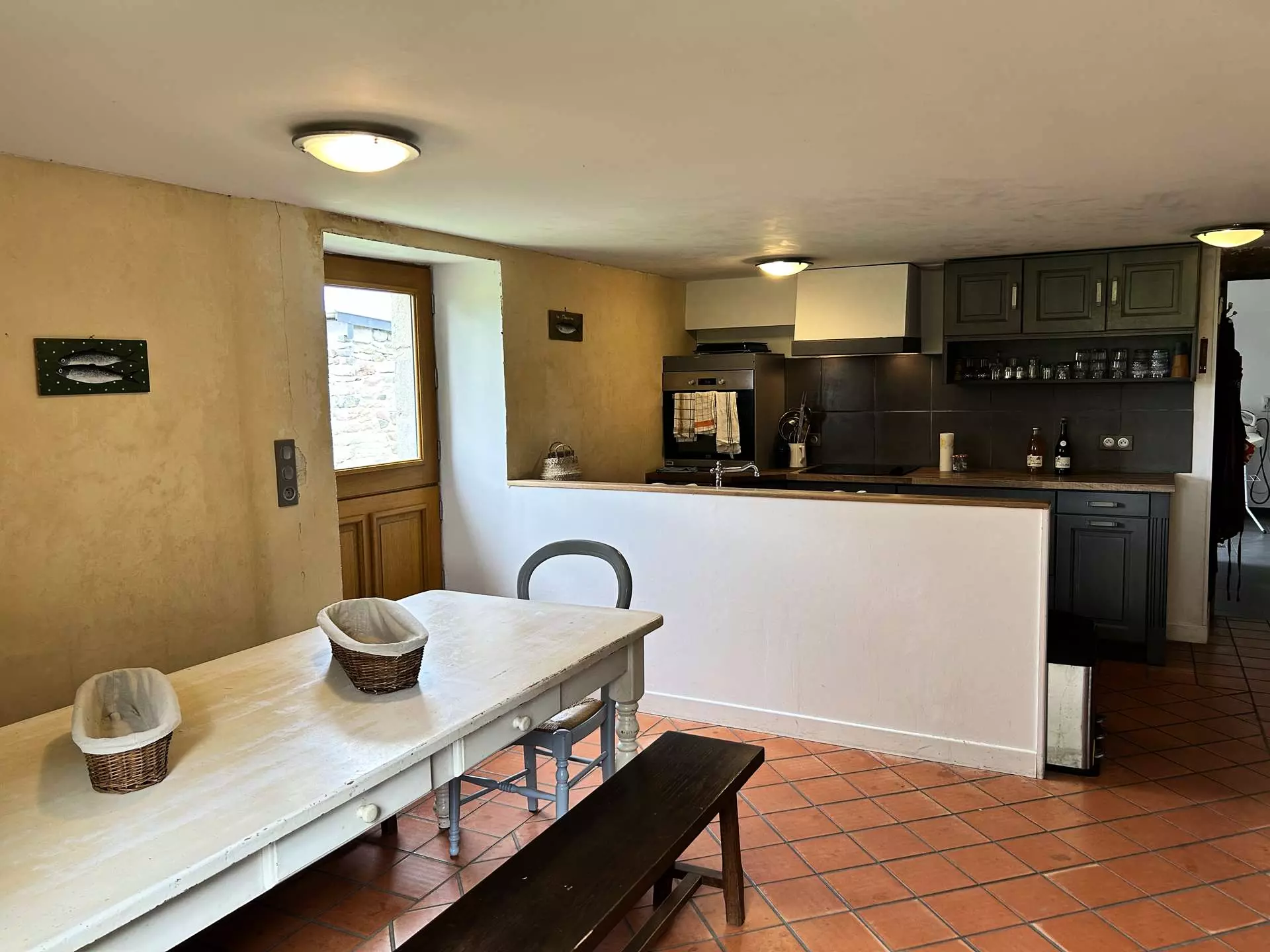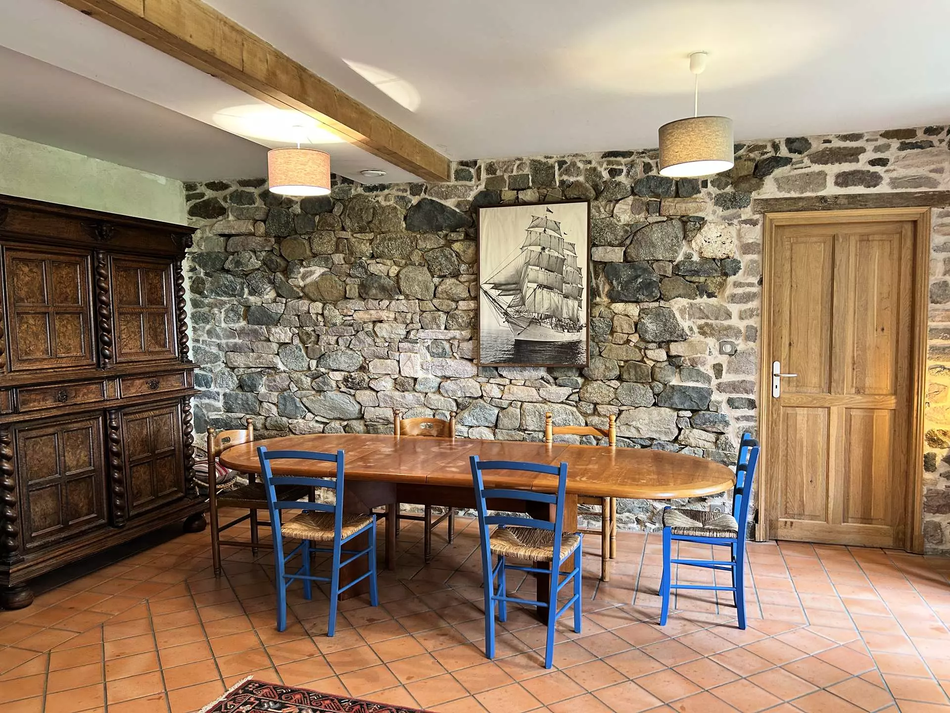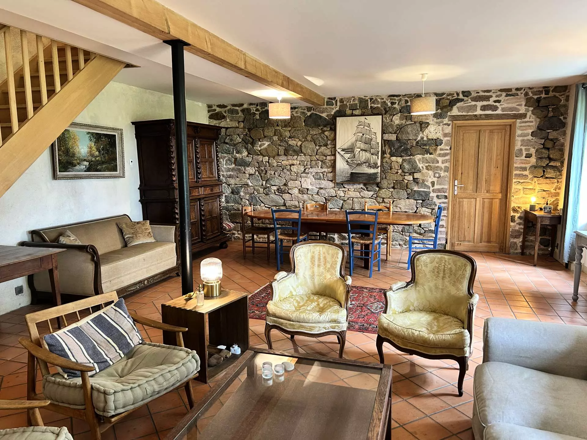 - Une grande pièce de vie lumineuse avec salon (canapé, fauteuils, WiFi) et table à manger pour 10 personnes ;
