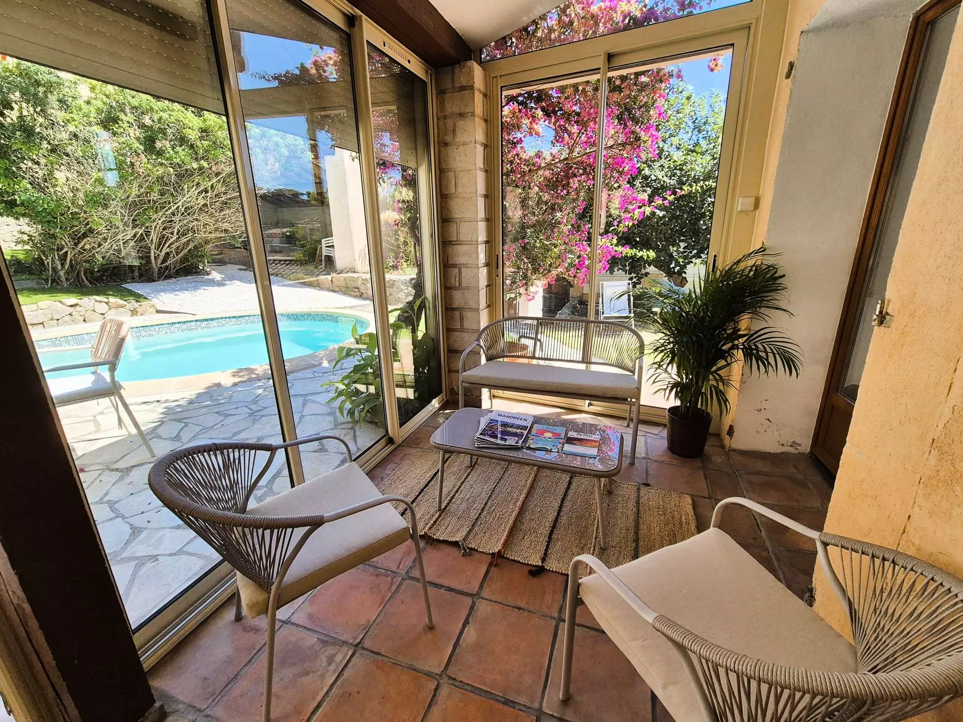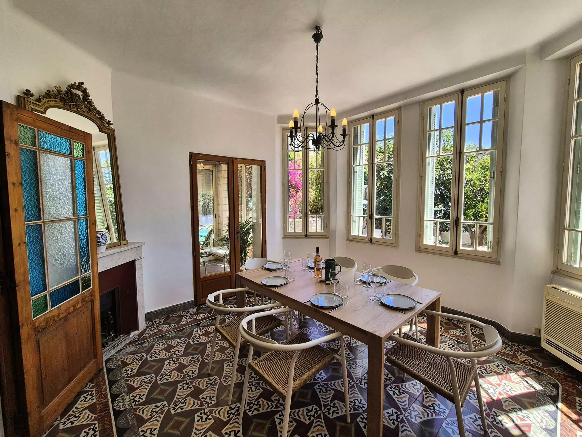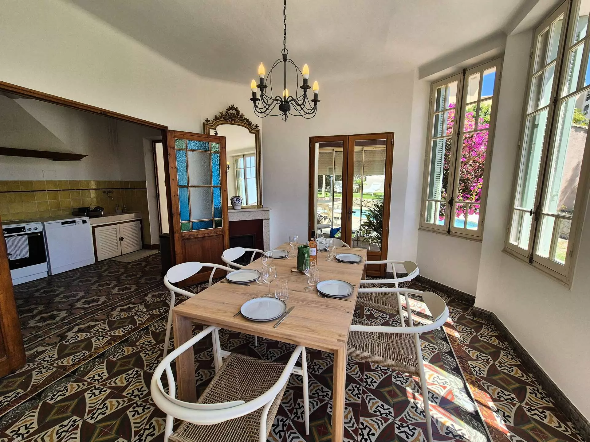 La maison s'ouvre sur une jolie véranda qui donne accès à un beau séjour baigné de lumière, au sol ancien plein de charme, et entièrement climatisé. L'espace de vie comprend également un coin salon avec télévision climatisé et un canapé. La cuisine ouverte est entièrement équipée (réfrigérateur, four, plaque, lave-vaisselle, cafetière, etc.).