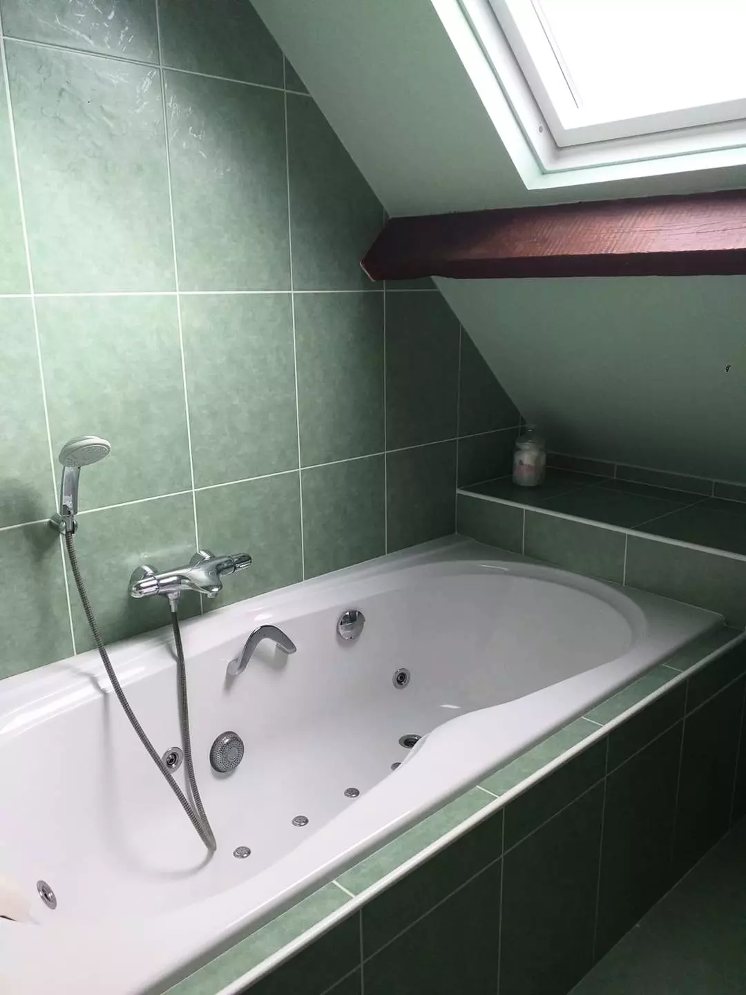 - Pour votre détente une baignoire balnéo (pas d'eau chaude) est à votre disposition. Vasque et WC ;