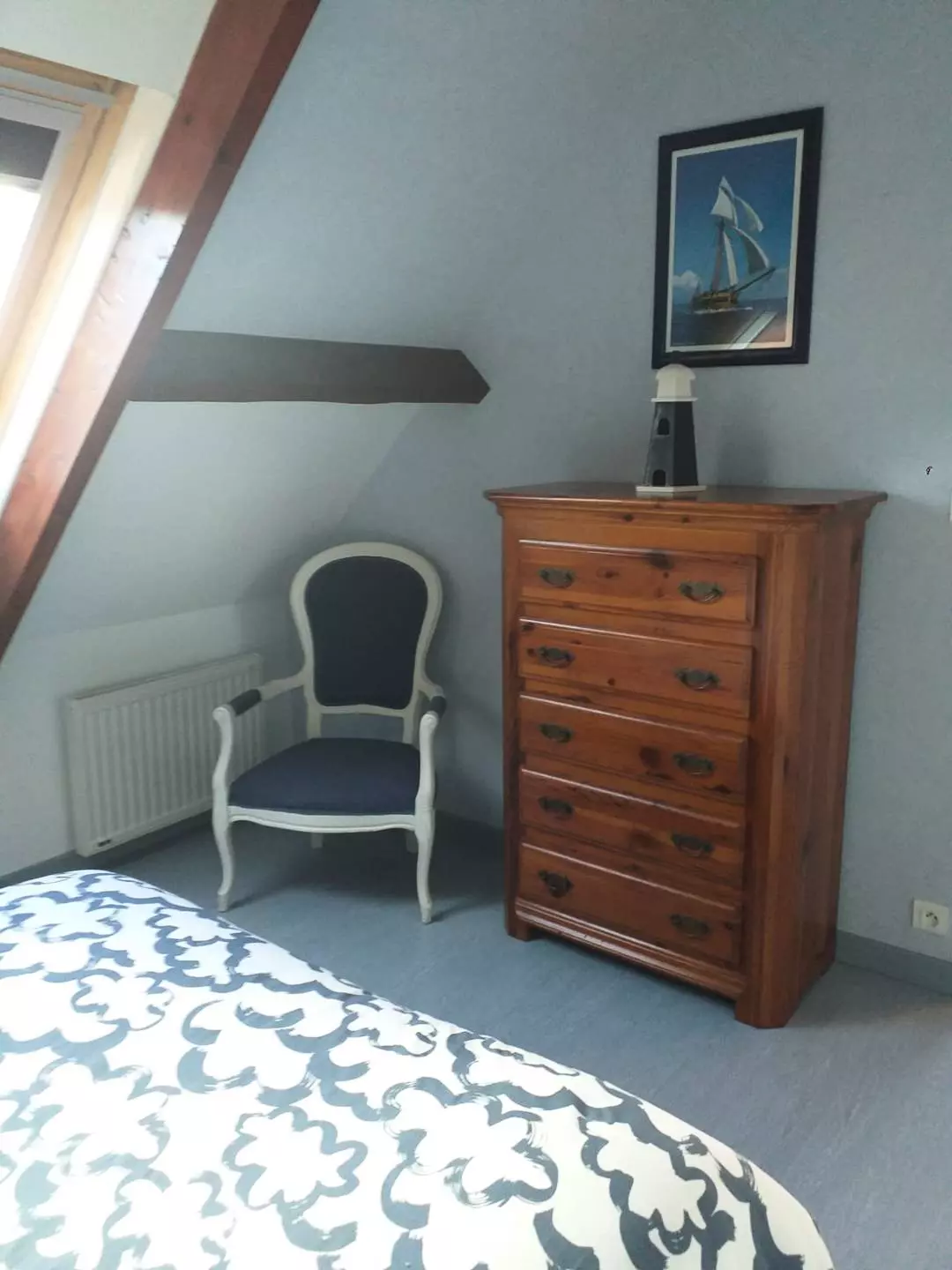 - Une chambre avec lit double (140*200cm), armoire et télévision ;
